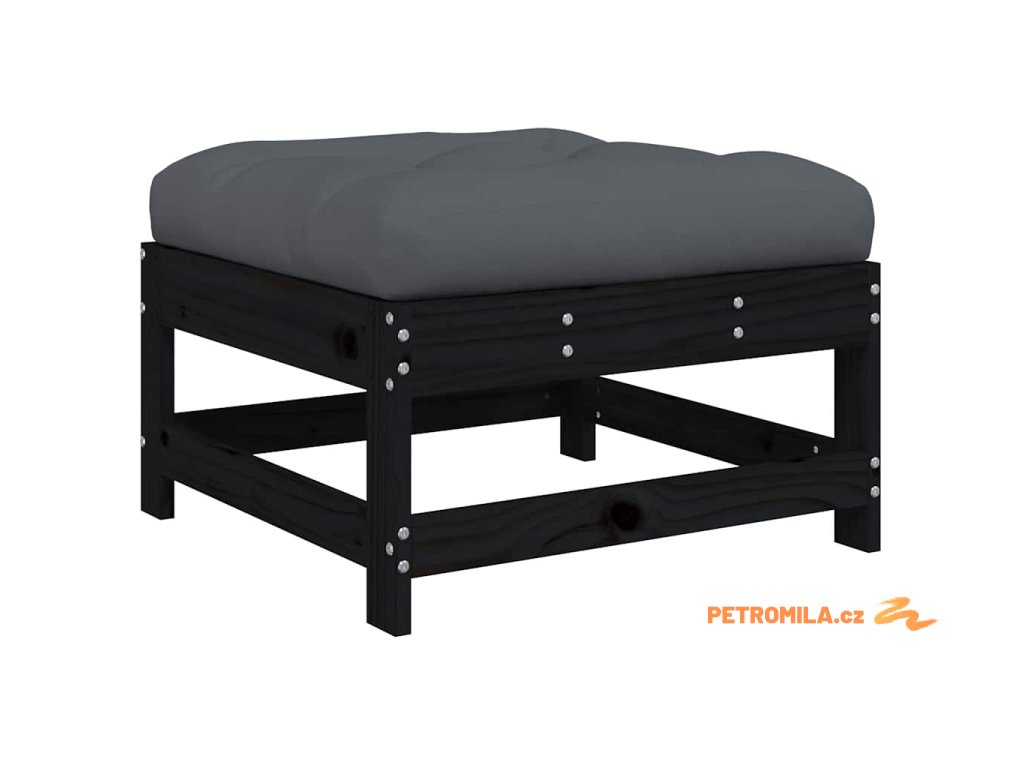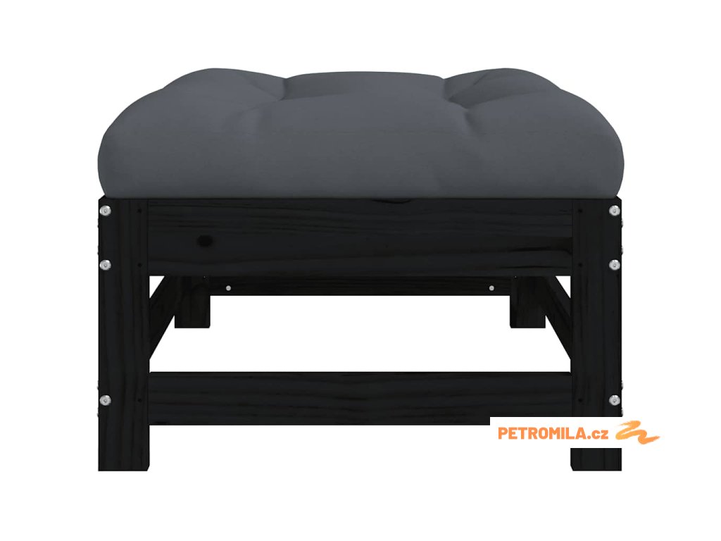Zahradní podnožka s poduškou černá masivní borové dřevo