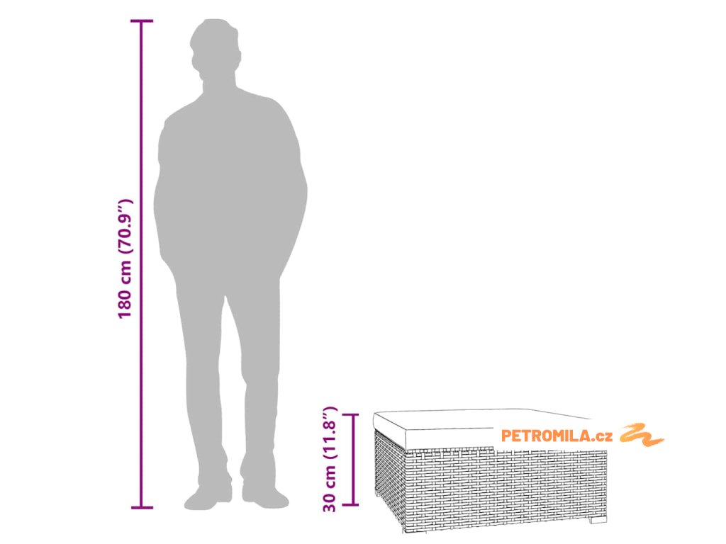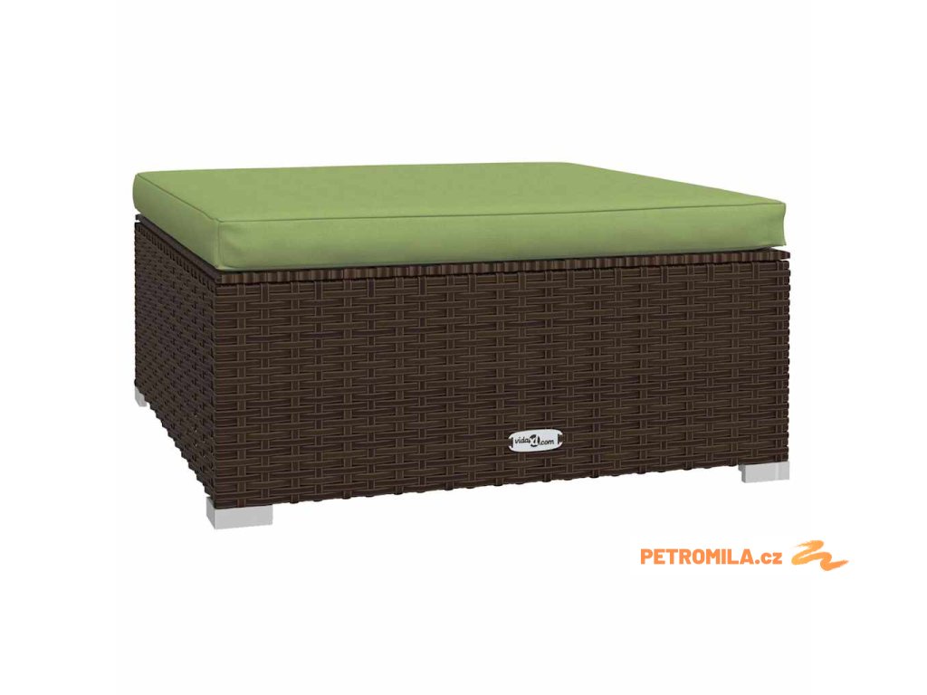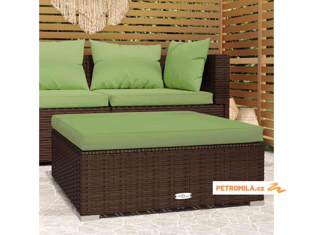 Zahradní podnožka s poduškou hnědá 70 x 70 x 30 cm polyratan