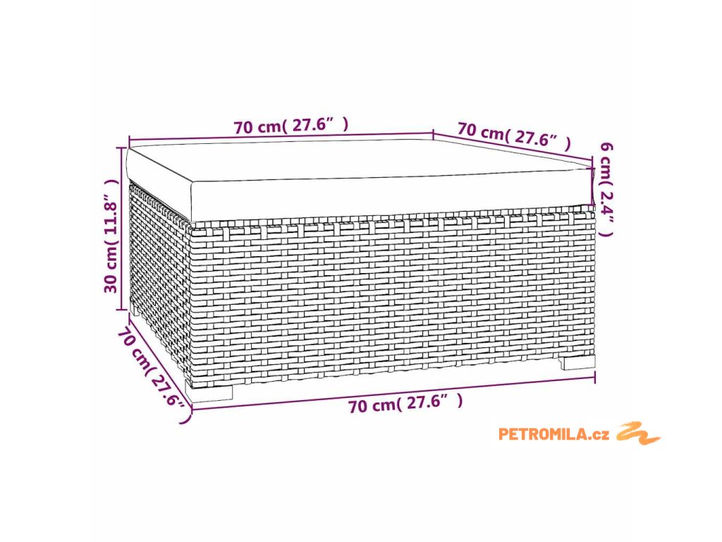 - Rozměry podnožky: 70 x 70 x 30 cm (D x Š x V)