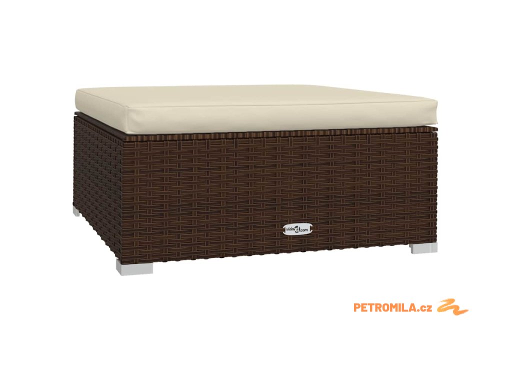 Zahradní podnožka s poduškou hnědá 70 x 70 x 30 cm polyratan