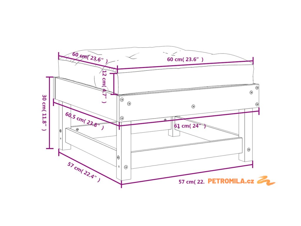 - Rozměry podušky na sedák: 60 x 60 x 12 cm (D x Š x T)