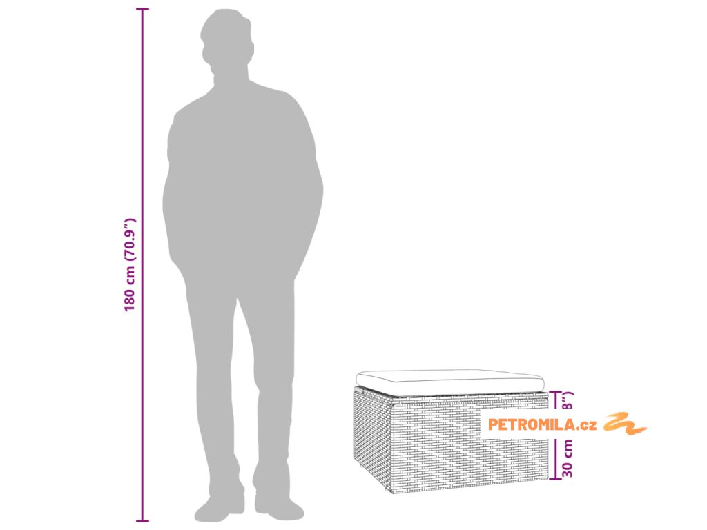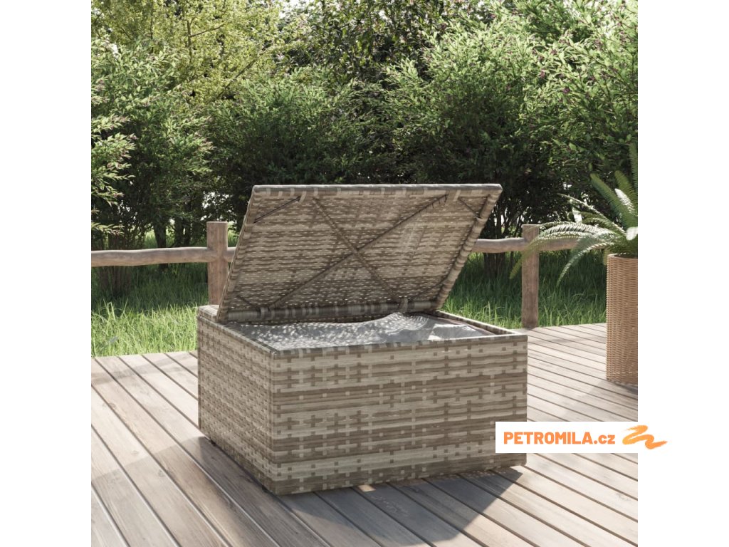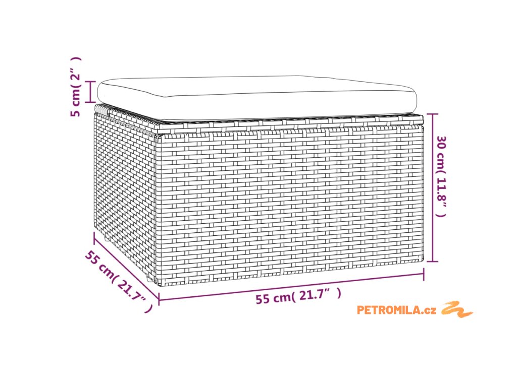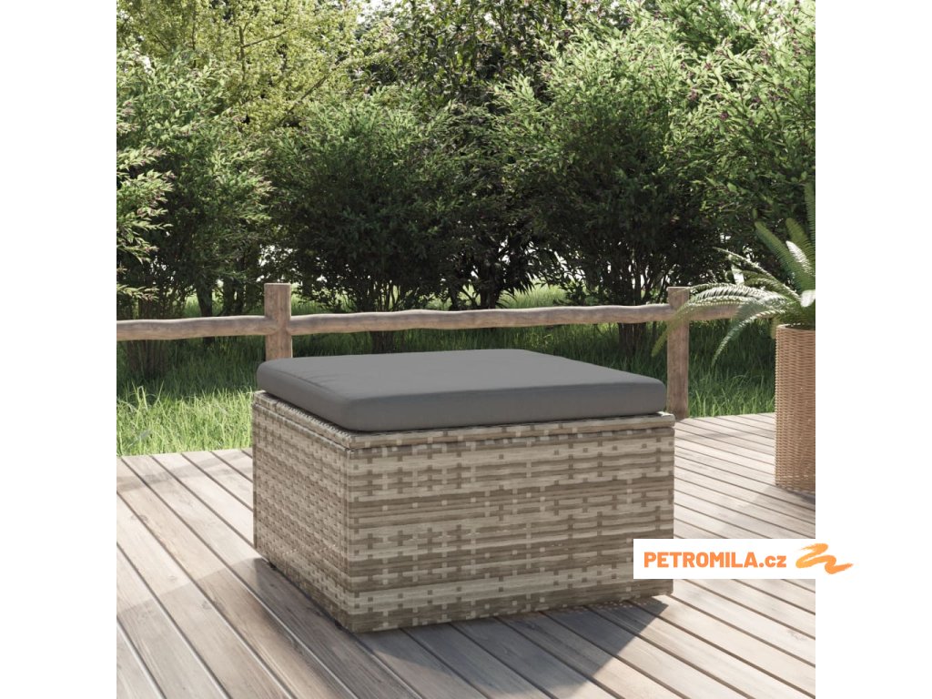 Zahradní podnožka s poduškou šedá 55 x 55 x 30 cm polyratan
