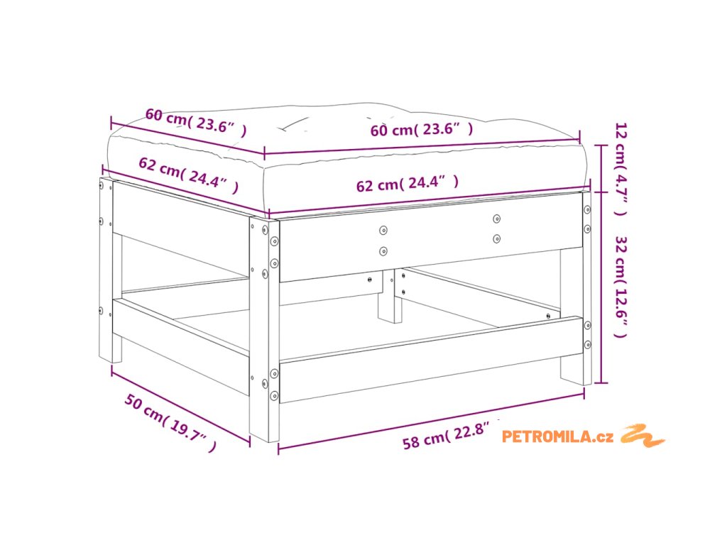 Zahradní podnožka s poduškou šedá masivní borové dřevo