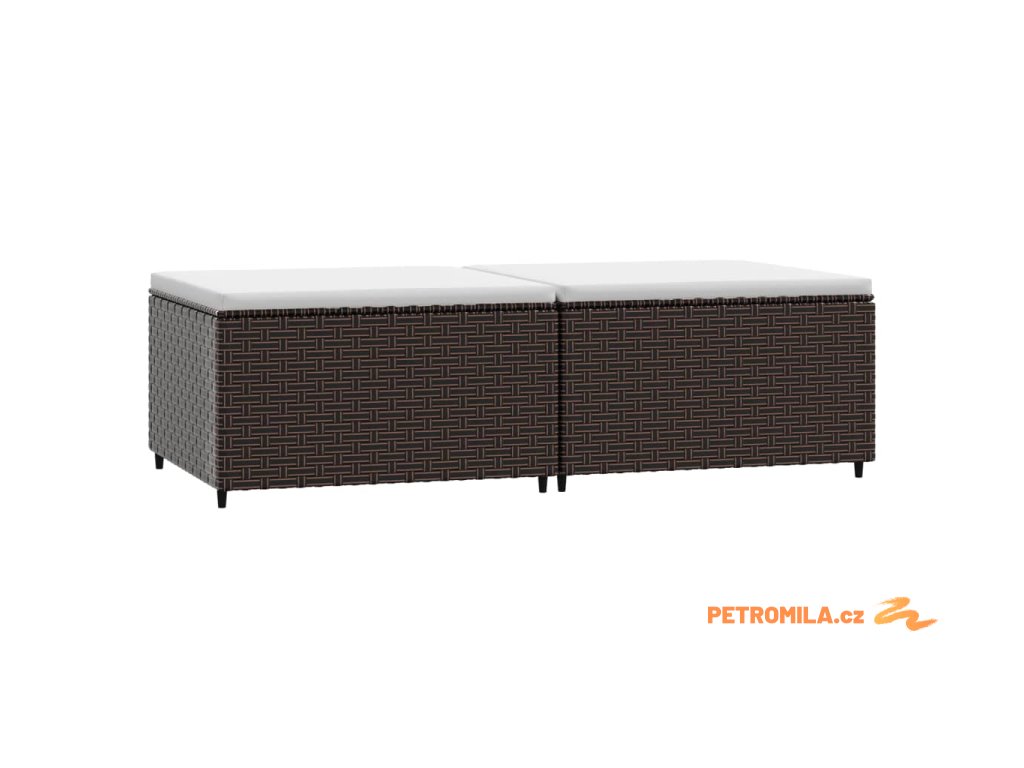 Zahradní podnožky s poduškami 2 ks hnědé polyratan
