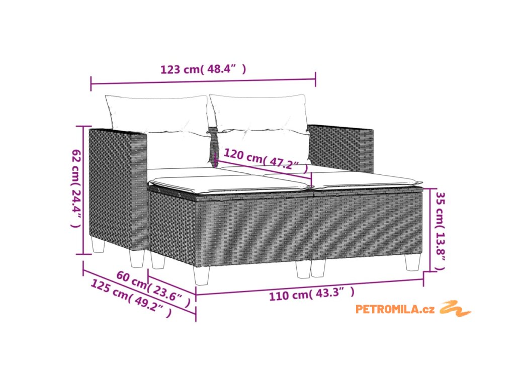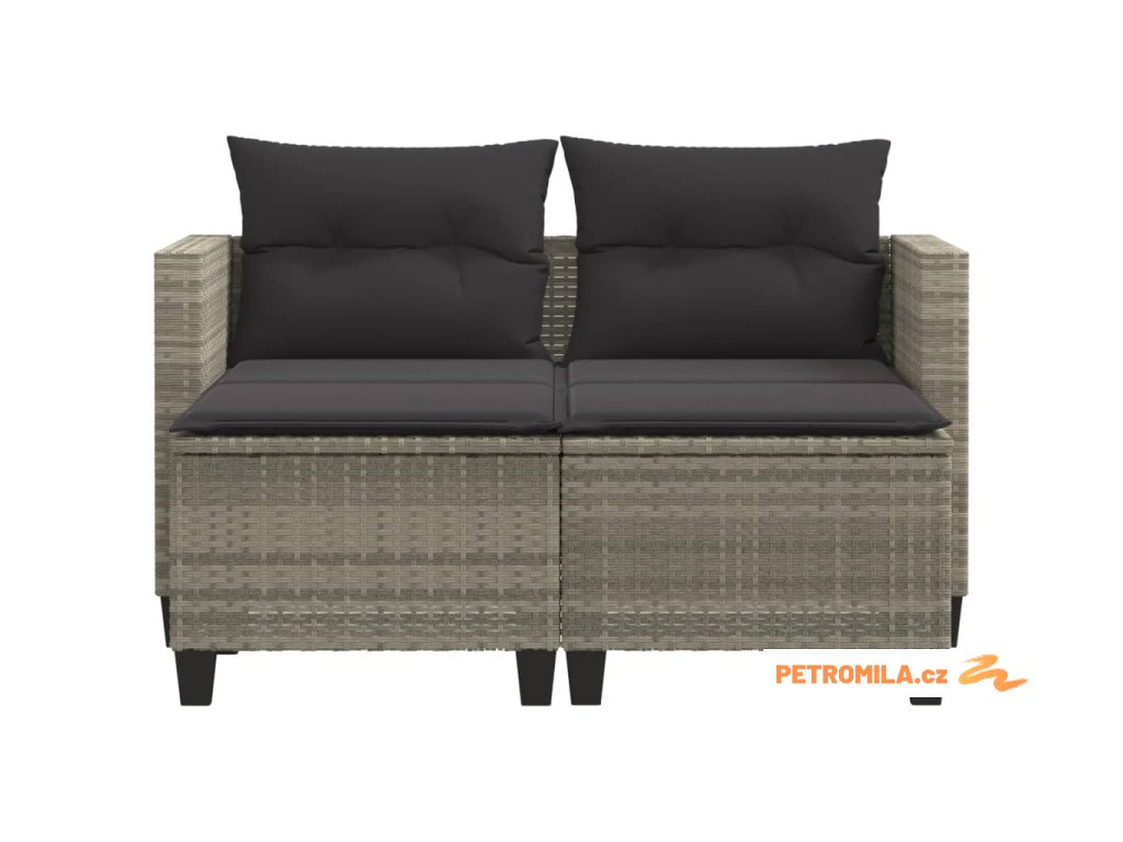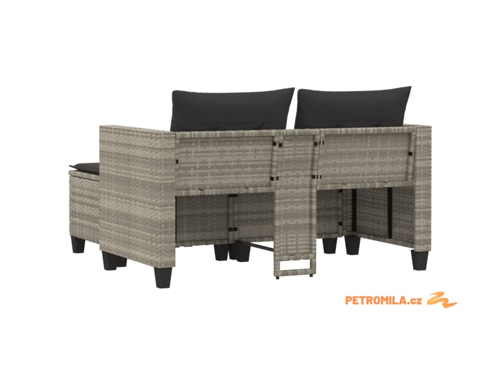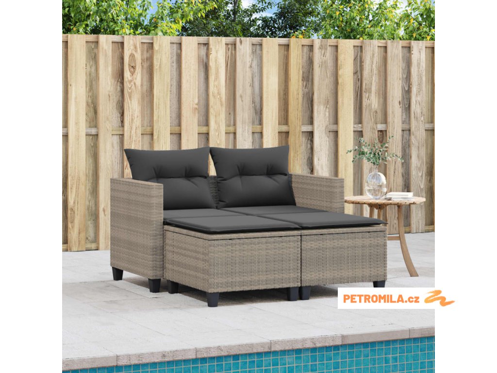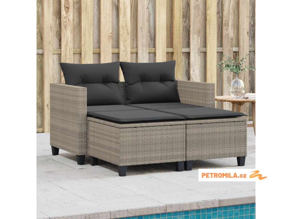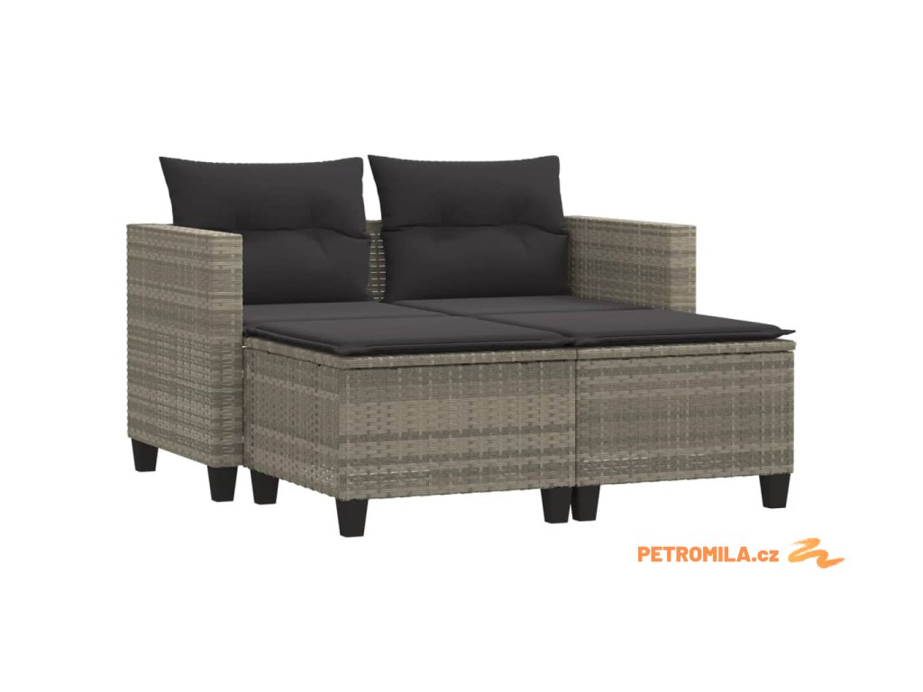 Zahradní pohovka 2místná s taburety světle šedá polyratan