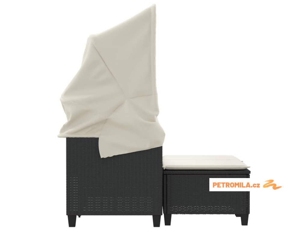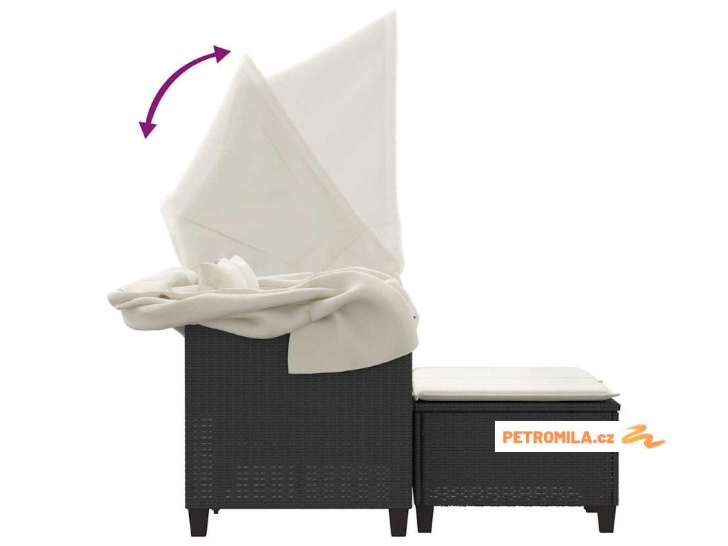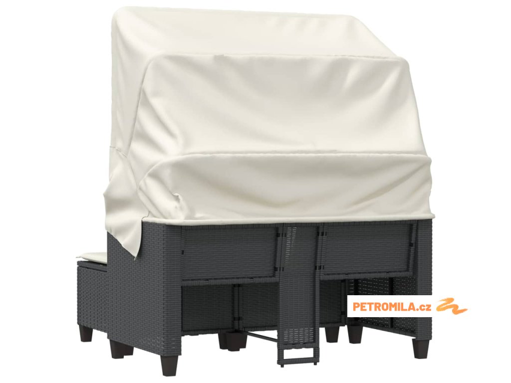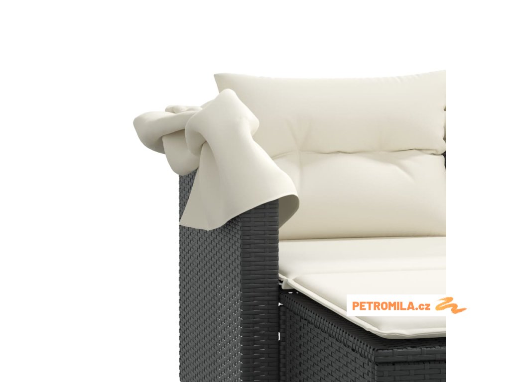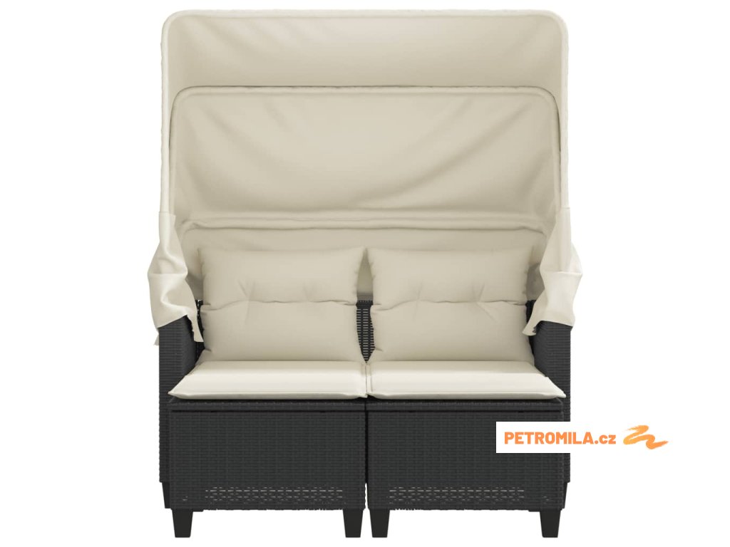 Zahradní pohovka 2místná se stříškou a taburety černá polyratan