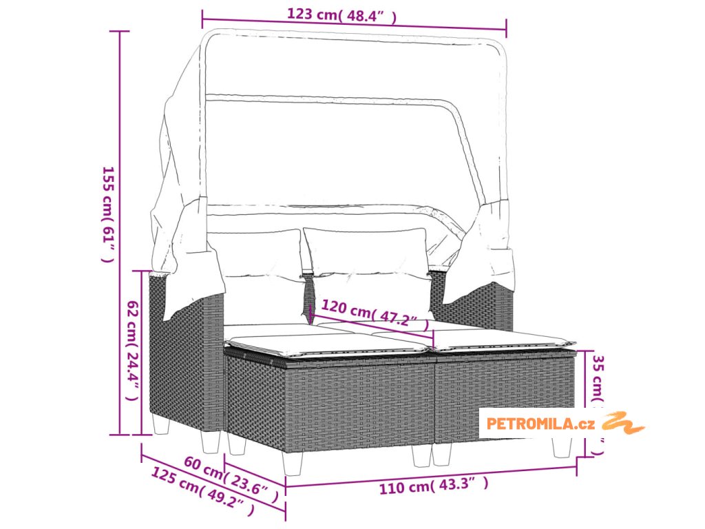 - Celkové rozměry bez stříšky: 122 x 65 x 62 cm (Š x H x V)