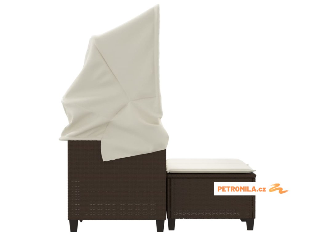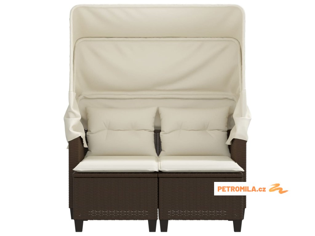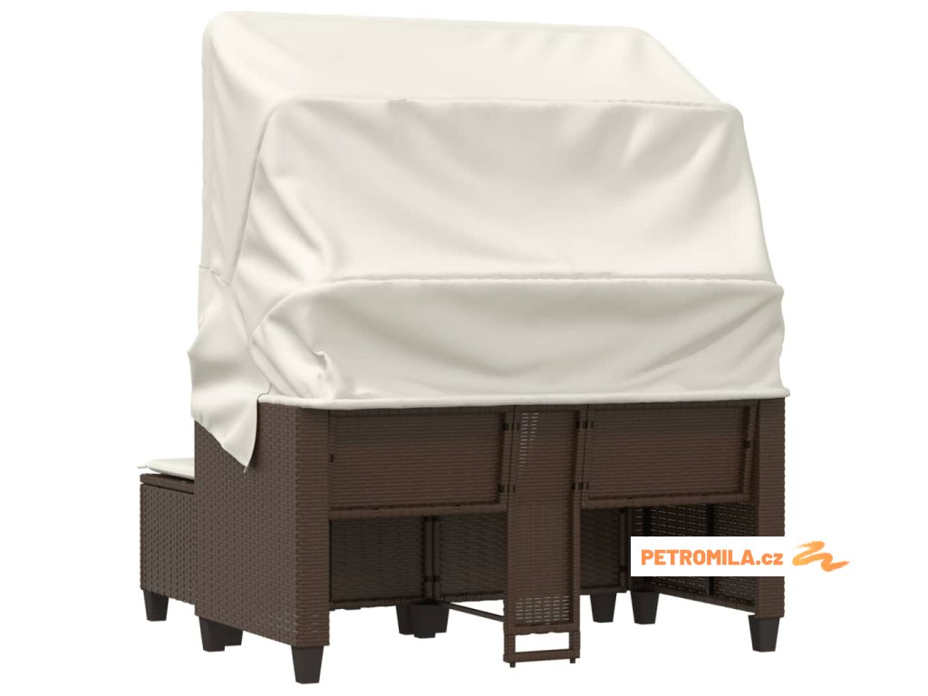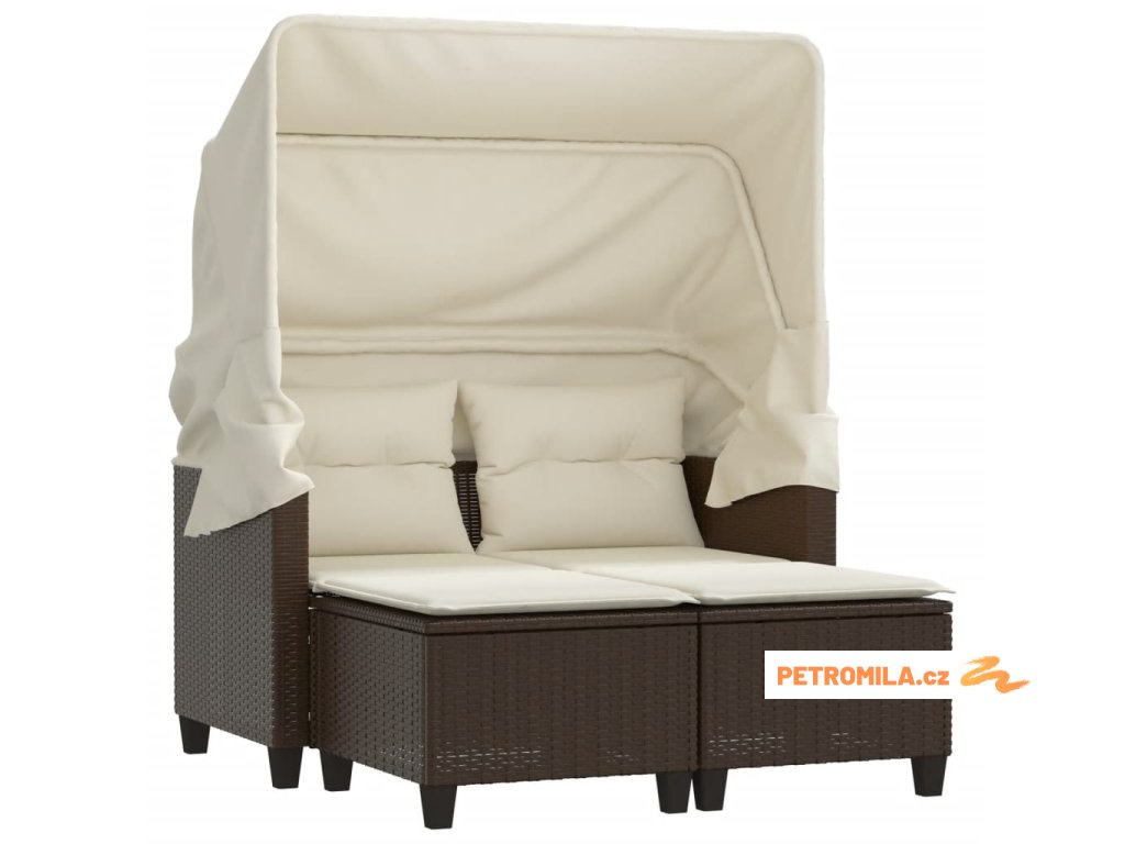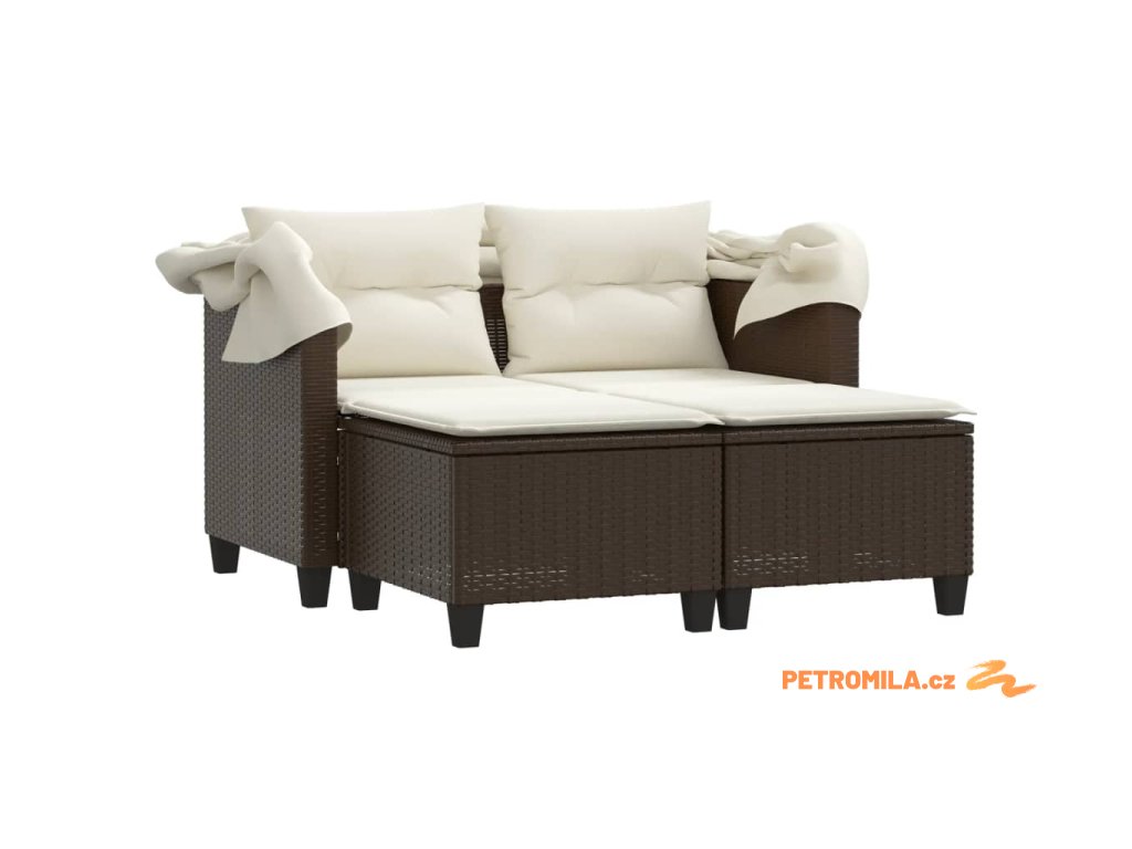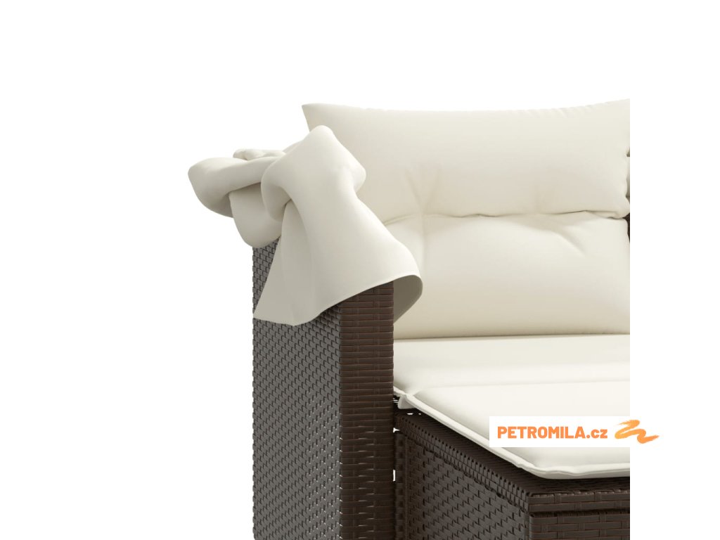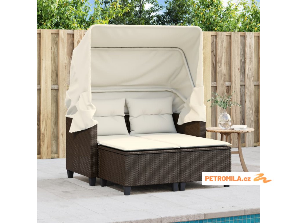 Zahradní pohovka 2místná se stříškou a taburety hnědá polyratan
