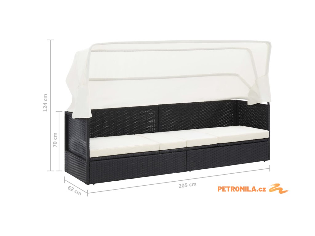 - Rozměry (bez stříšky): 205 x 62 x 70 cm (Š x H x V)