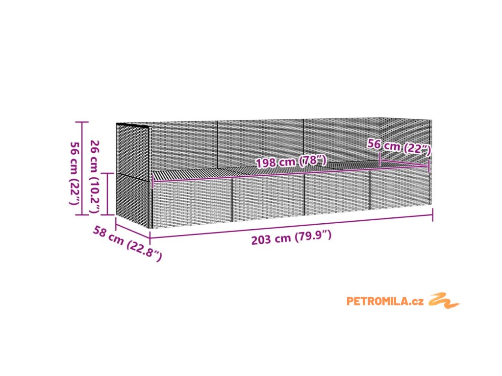 - Rozměry sedáku: 198 x 56 cm (Š x H)