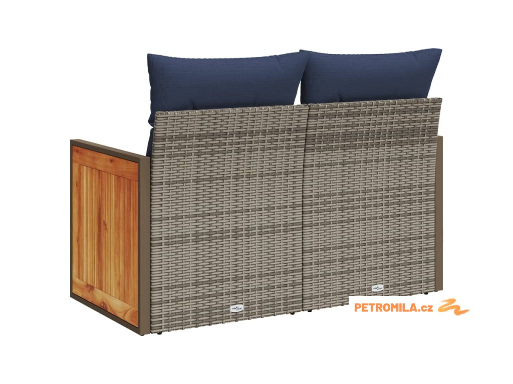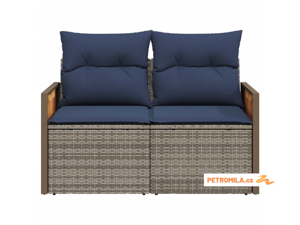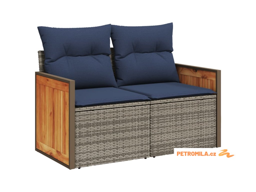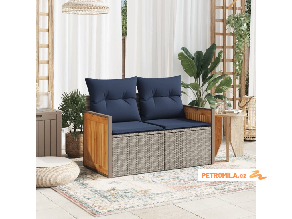 Zahradní pohovka s polštáři pro 2 osoby šedá polyratan