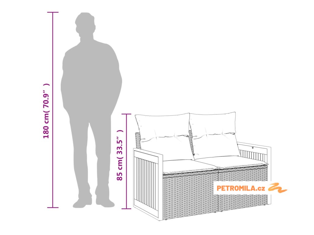 - Výška sedáku od země (bez polštáře): 37 cm