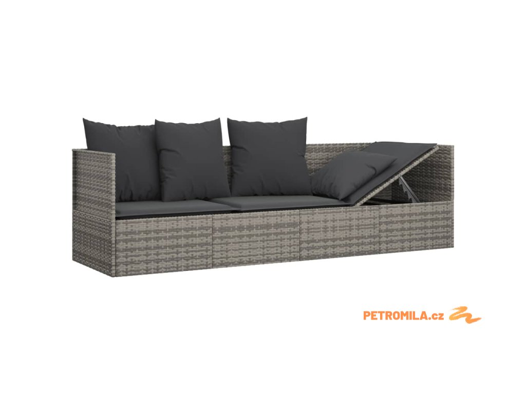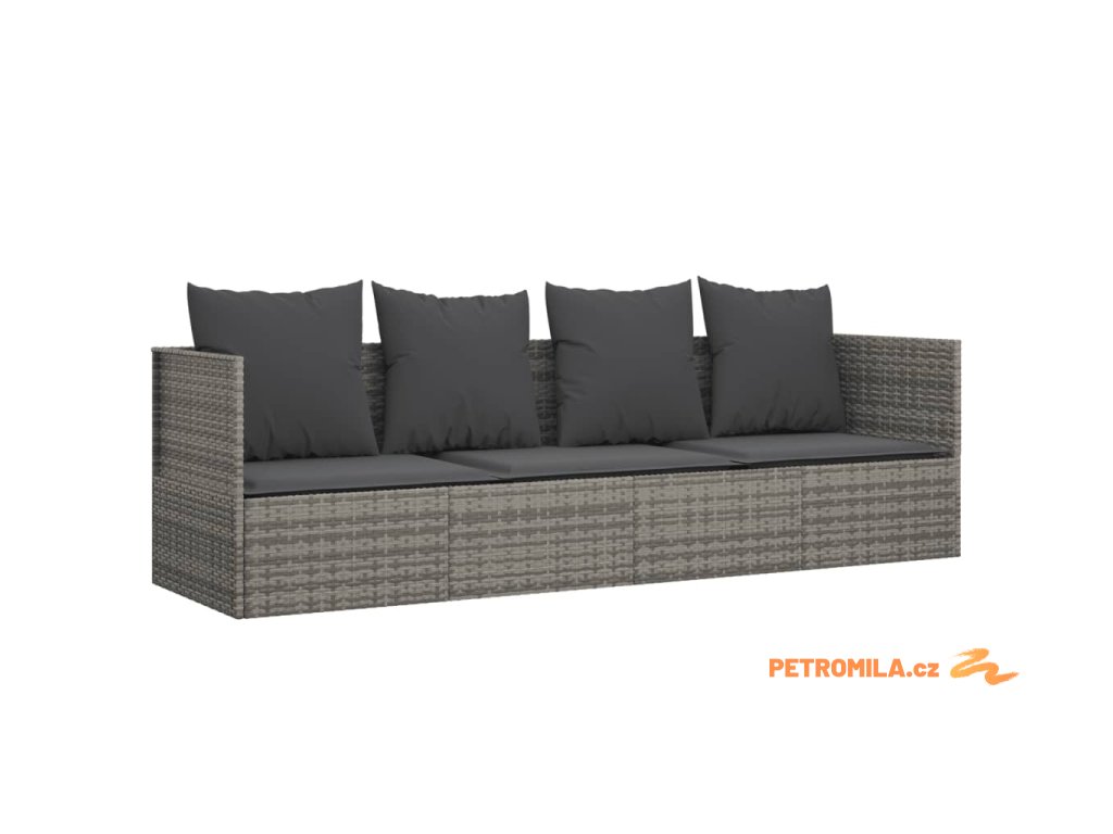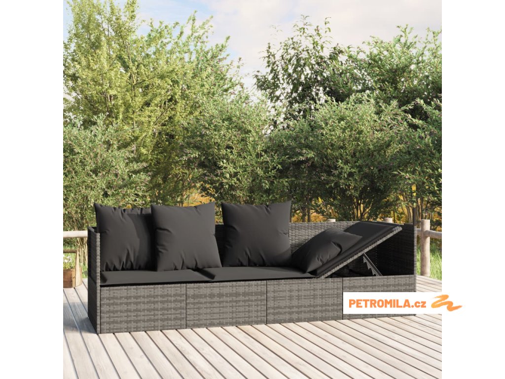 Zahradní pohovka s polštáři šedá polyratan