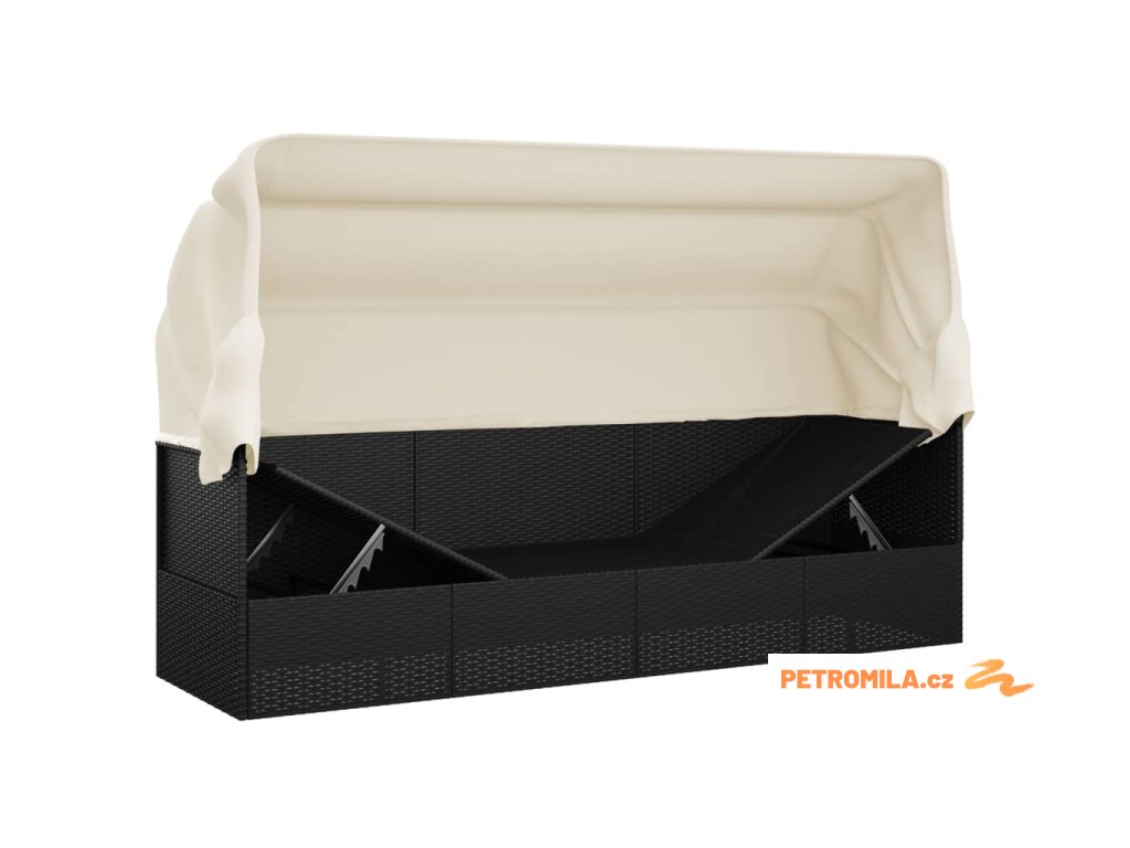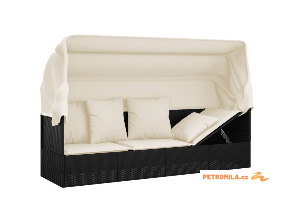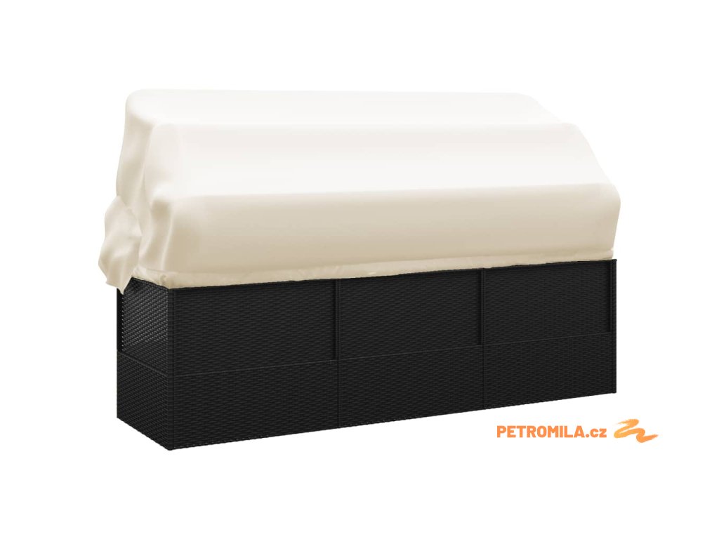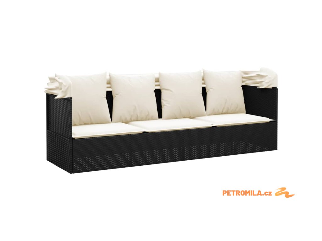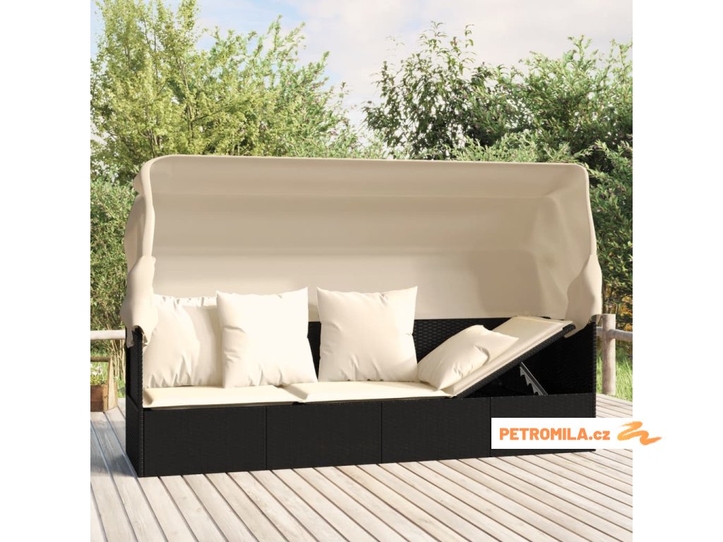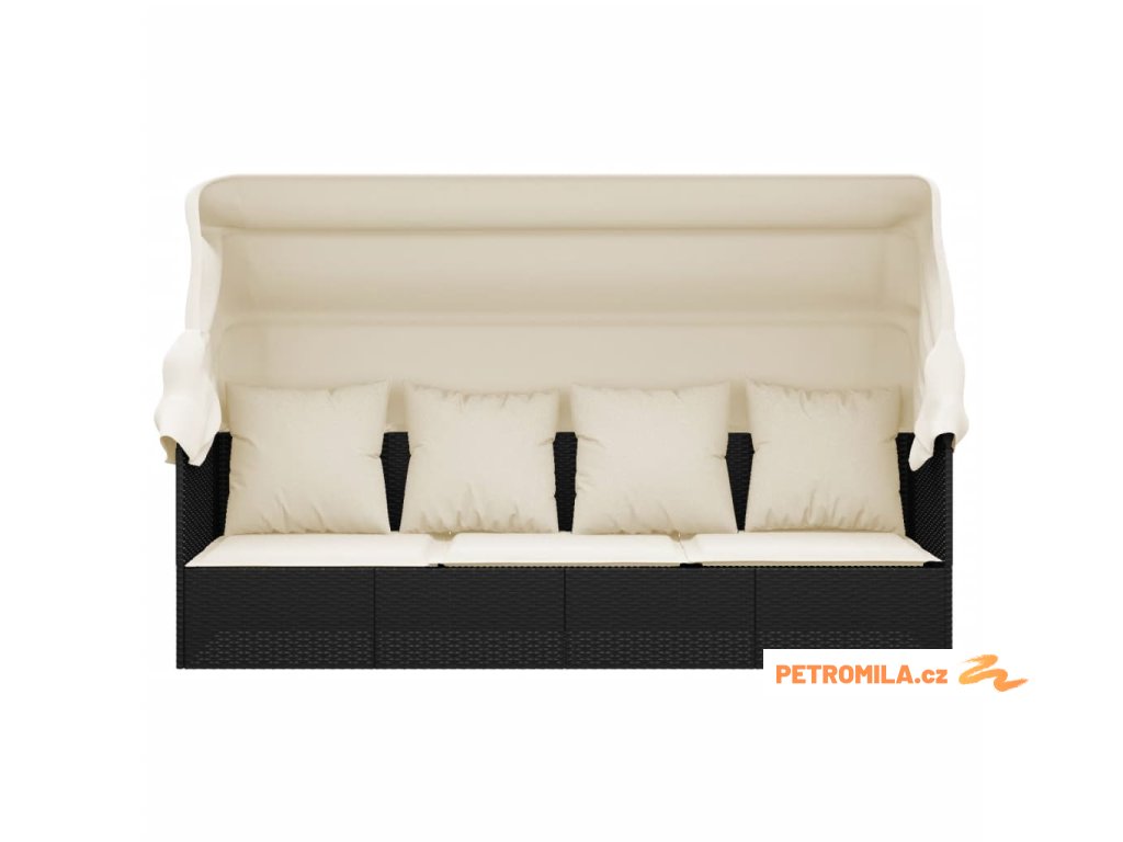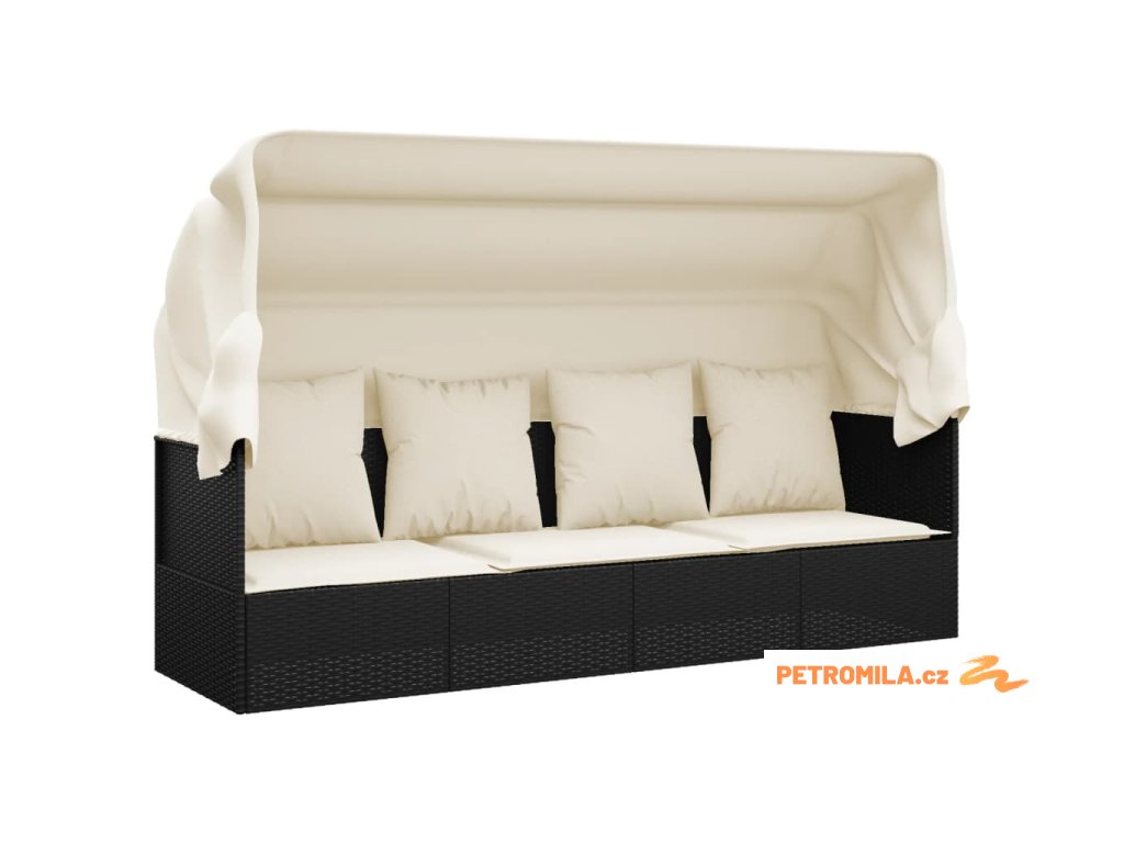 Zahradní pohovka se střechou a polštáři černá polyratan