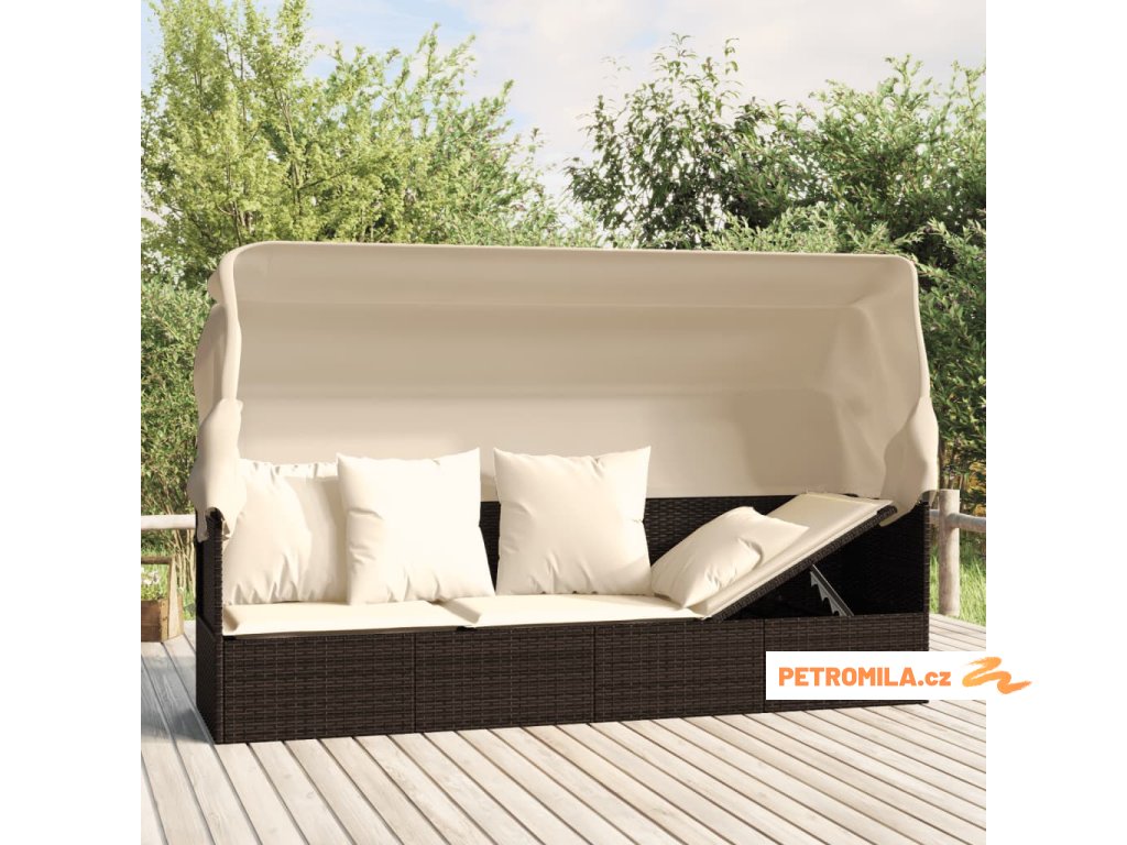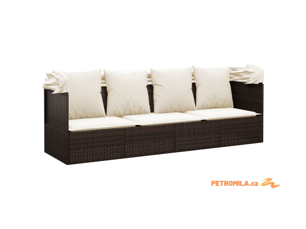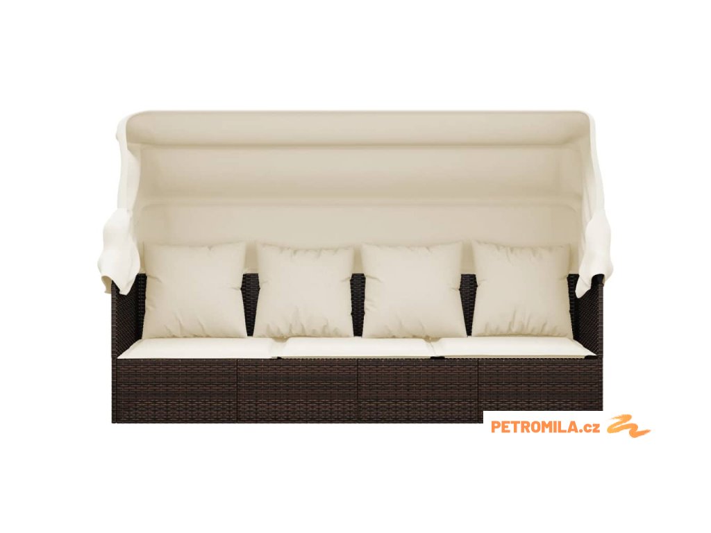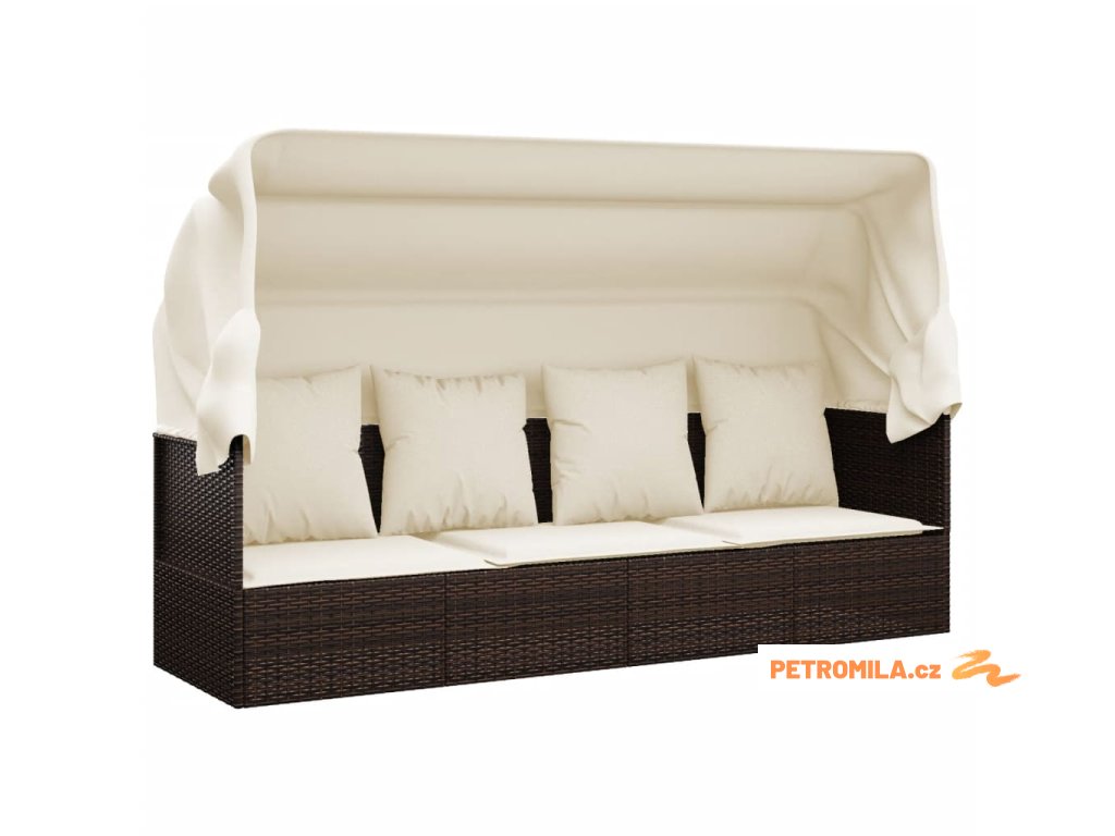 Zahradní pohovka se střechou a polštáři hnědá polyratan