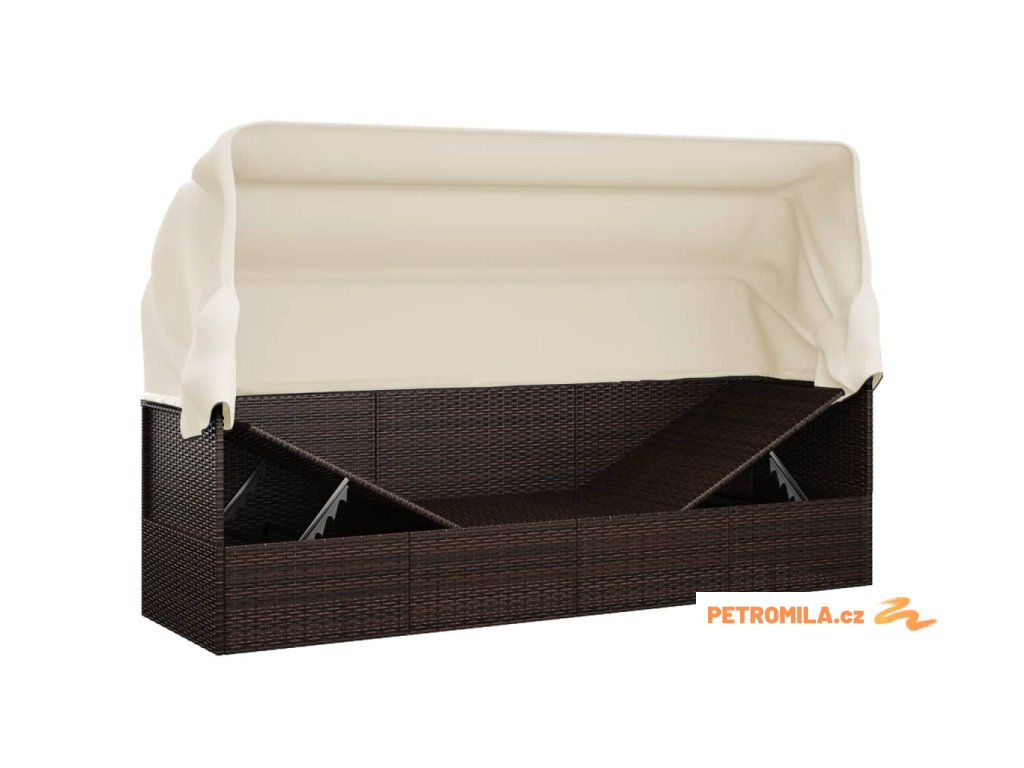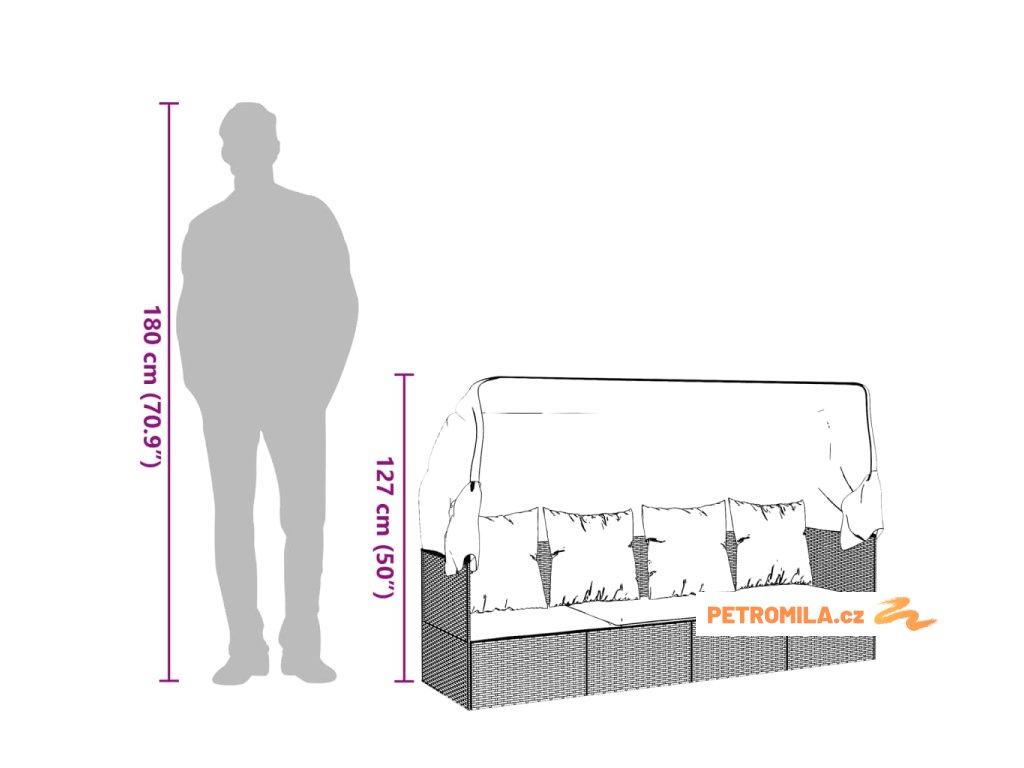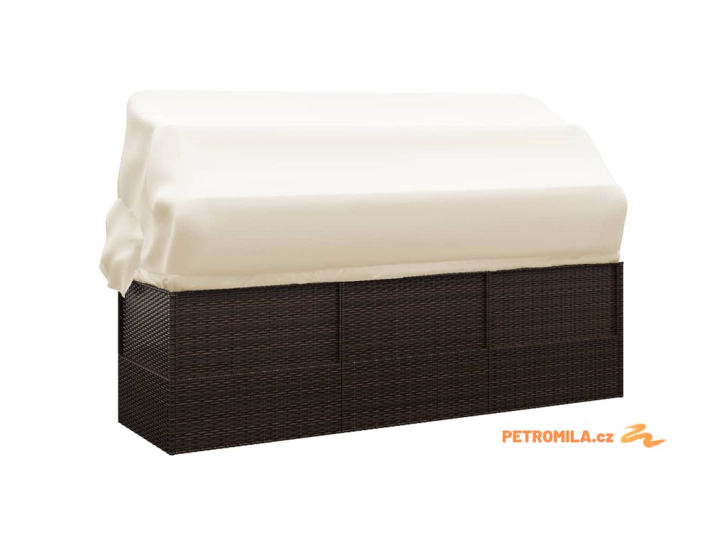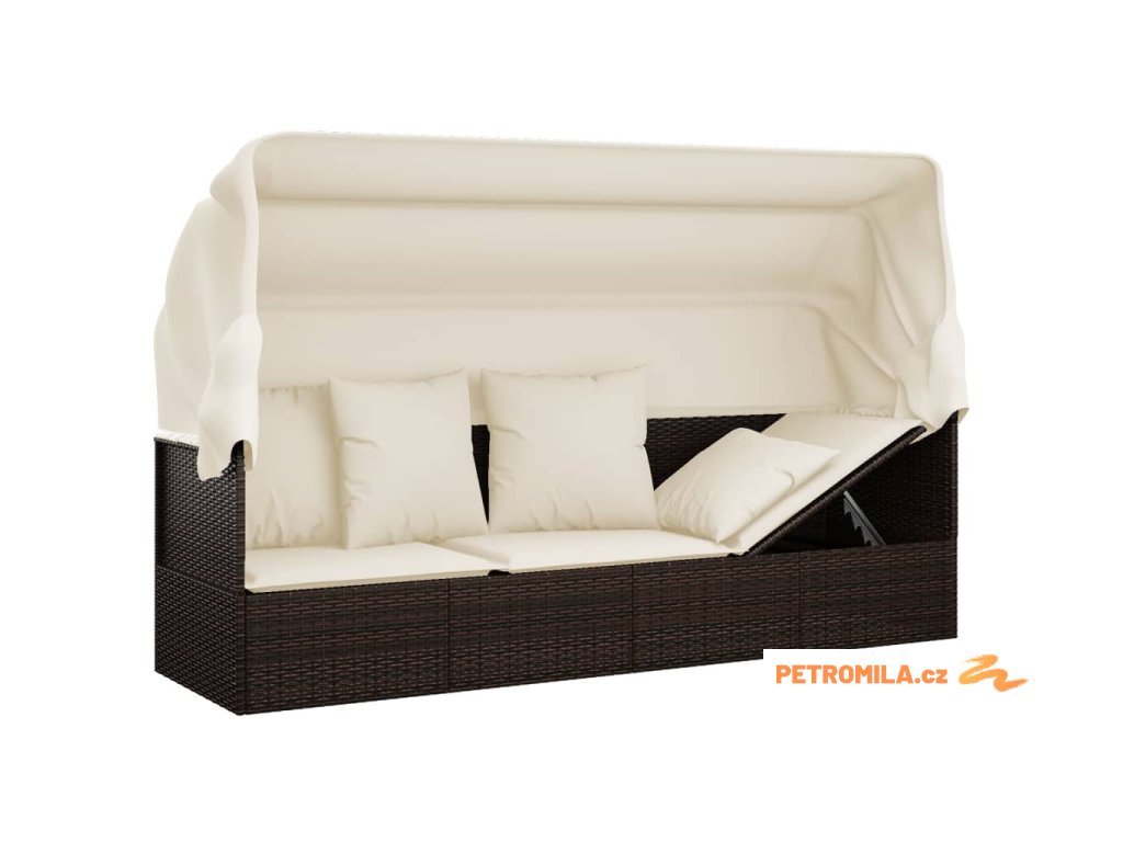 Zahradní pohovka se střechou a polštáři hnědá polyratan