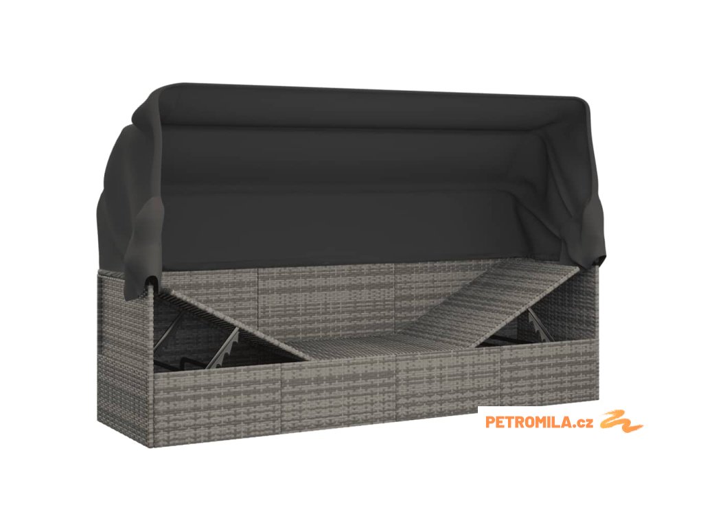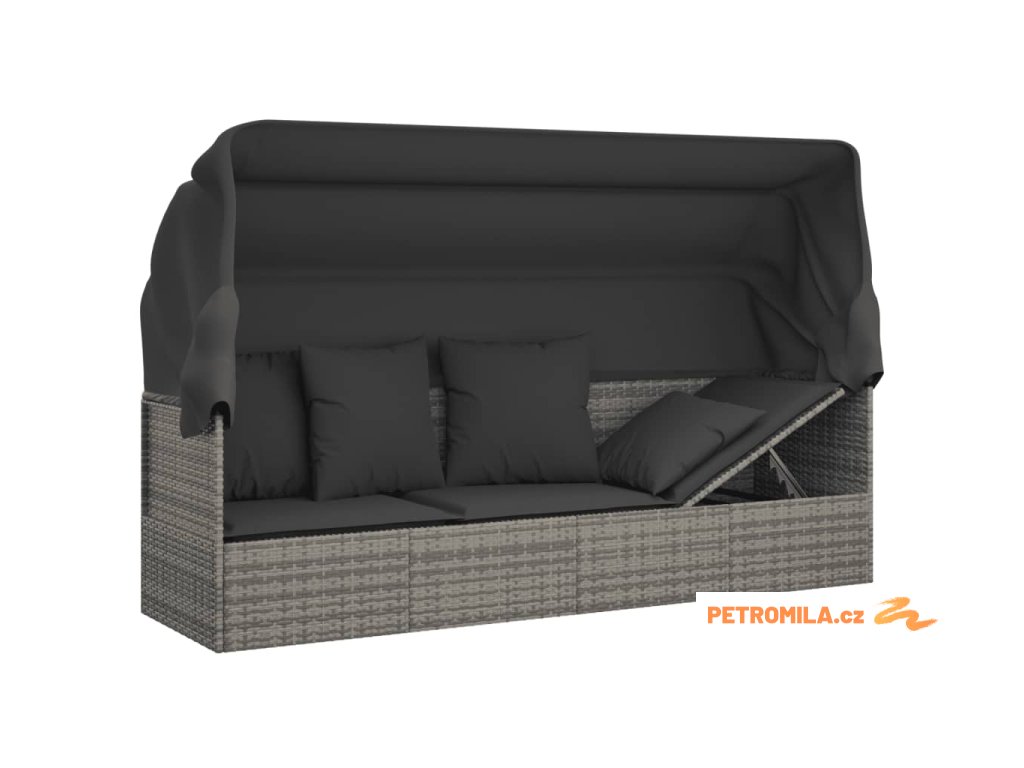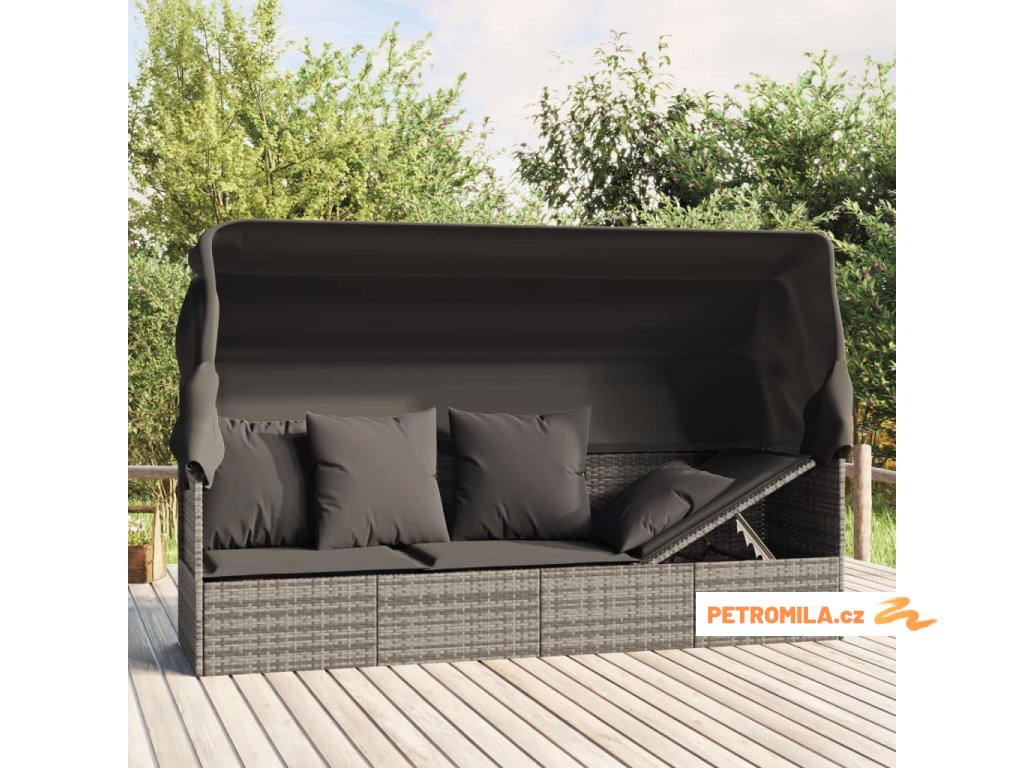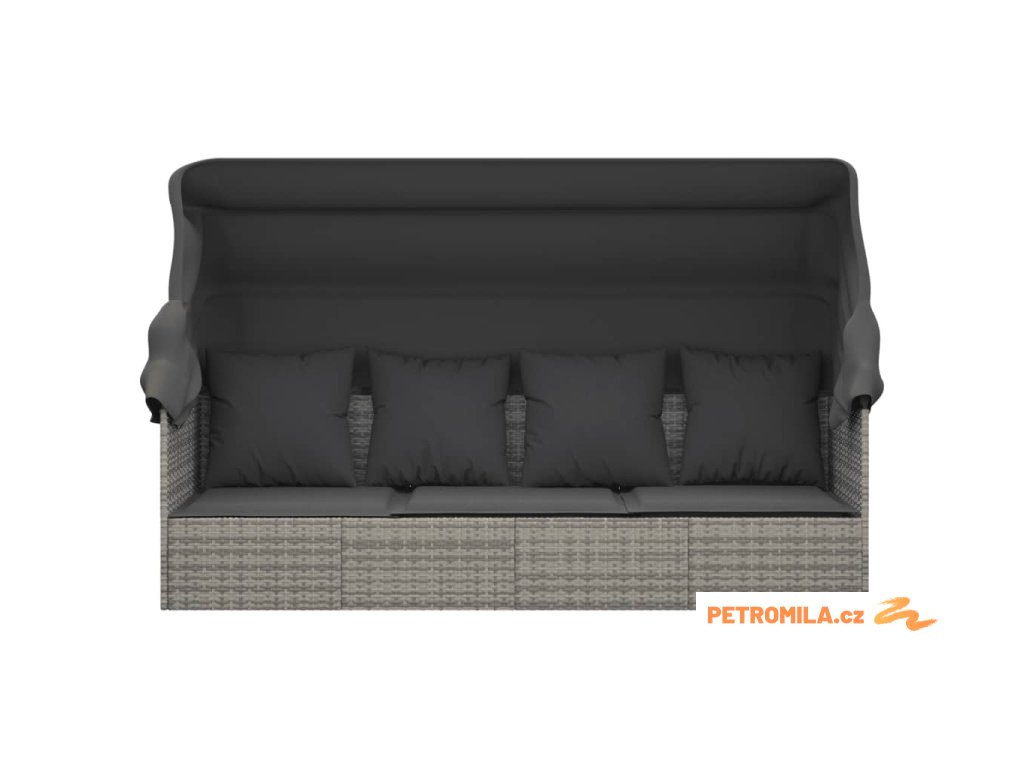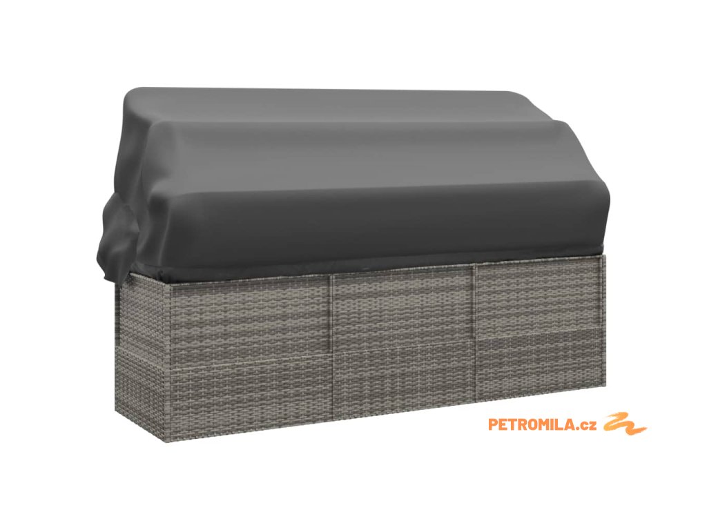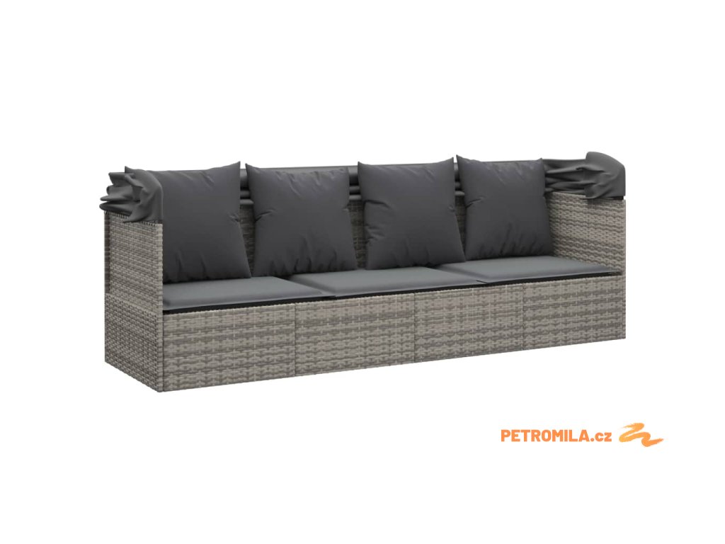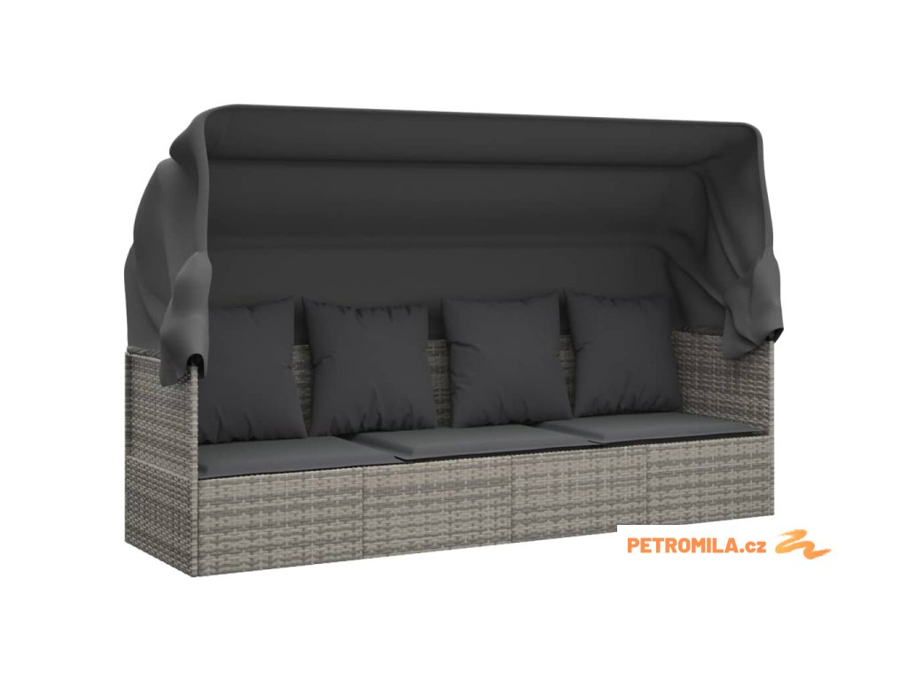 Zahradní pohovka se střechou a polštáři šedá polyratan