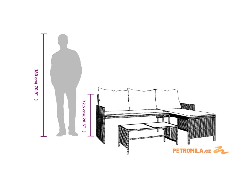 - Materiál: PE ratan, práškově lakovaná ocel, tvrzené sklo