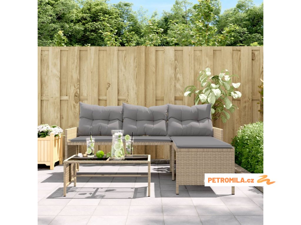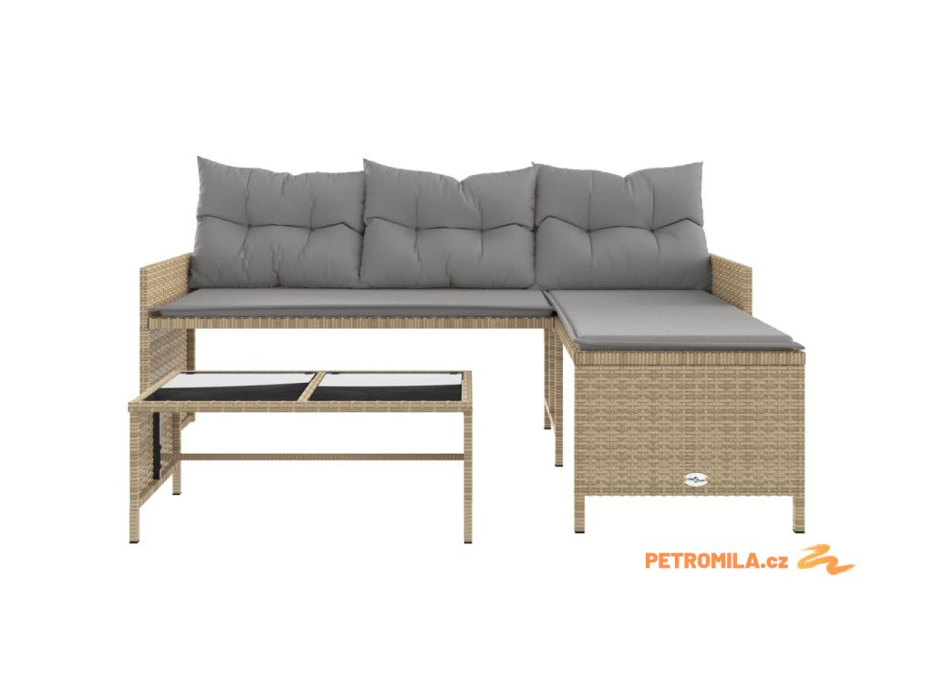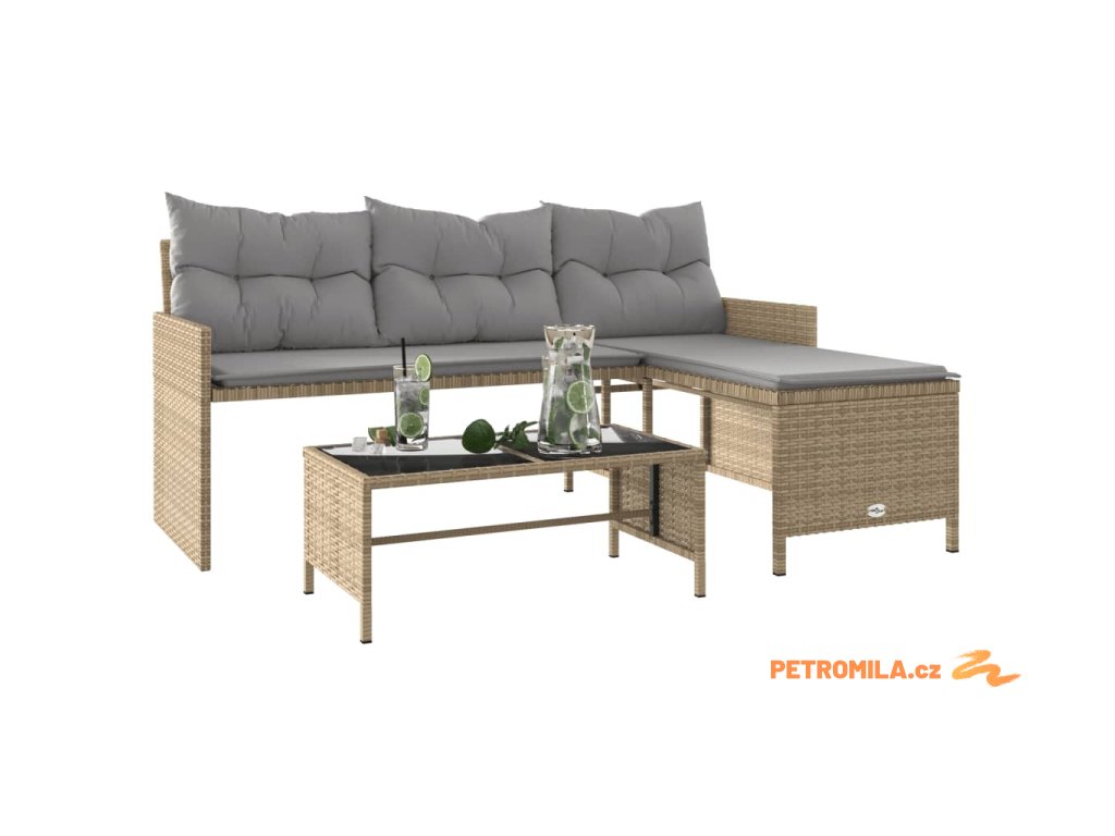 Zahradní pohovka ve tvaru L stolek a podušky mix béžové