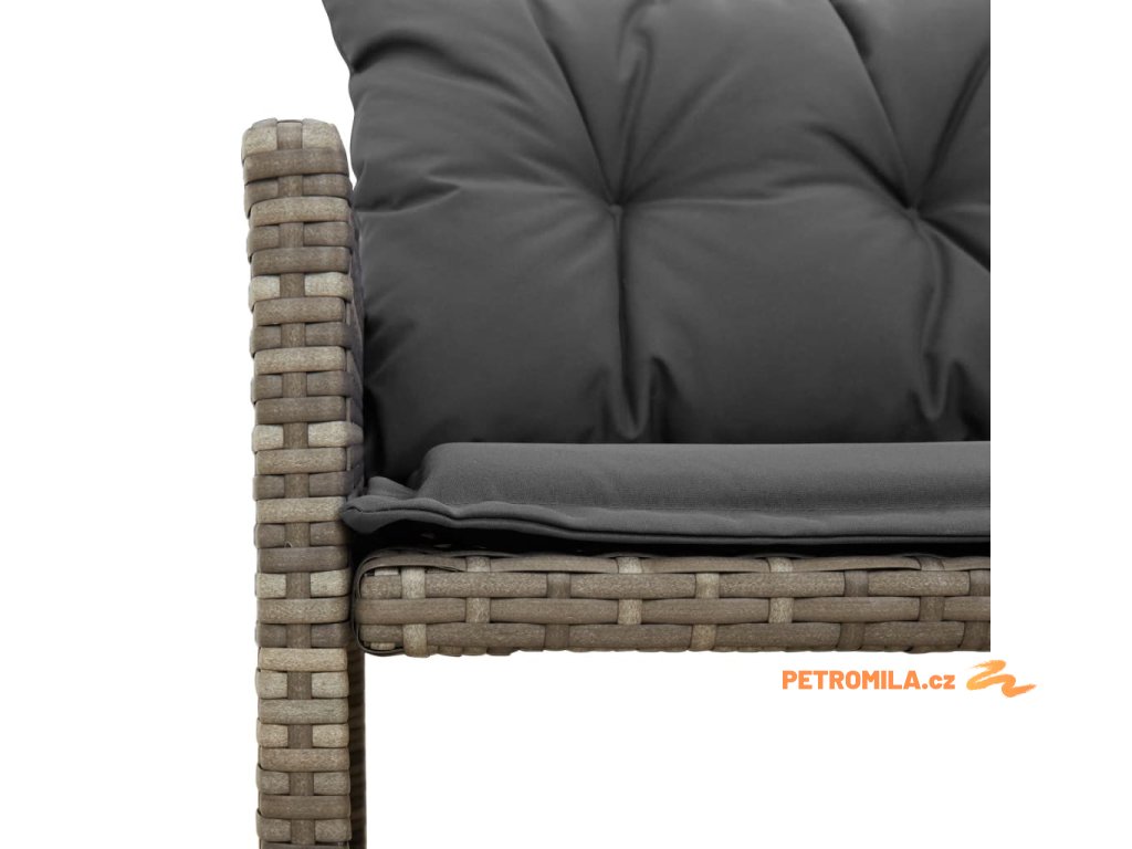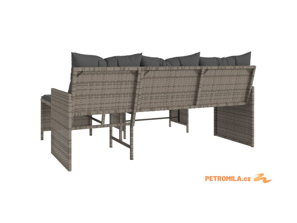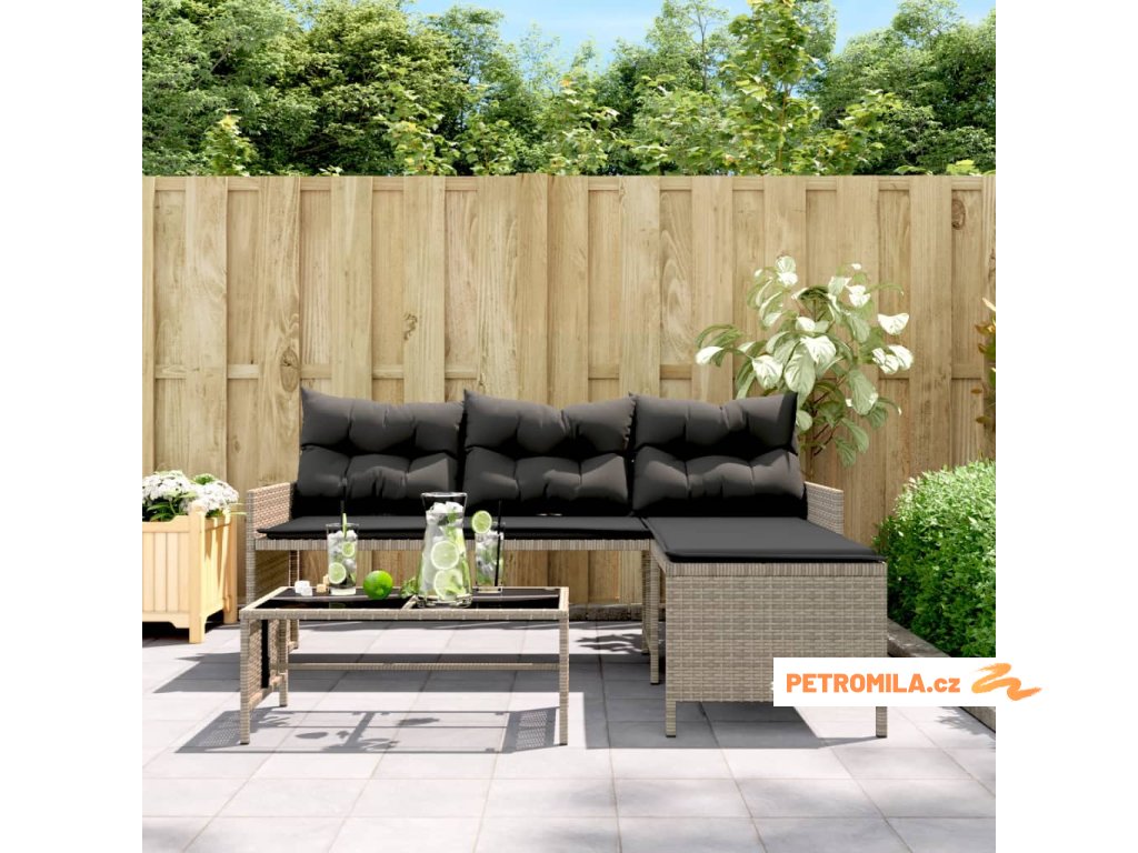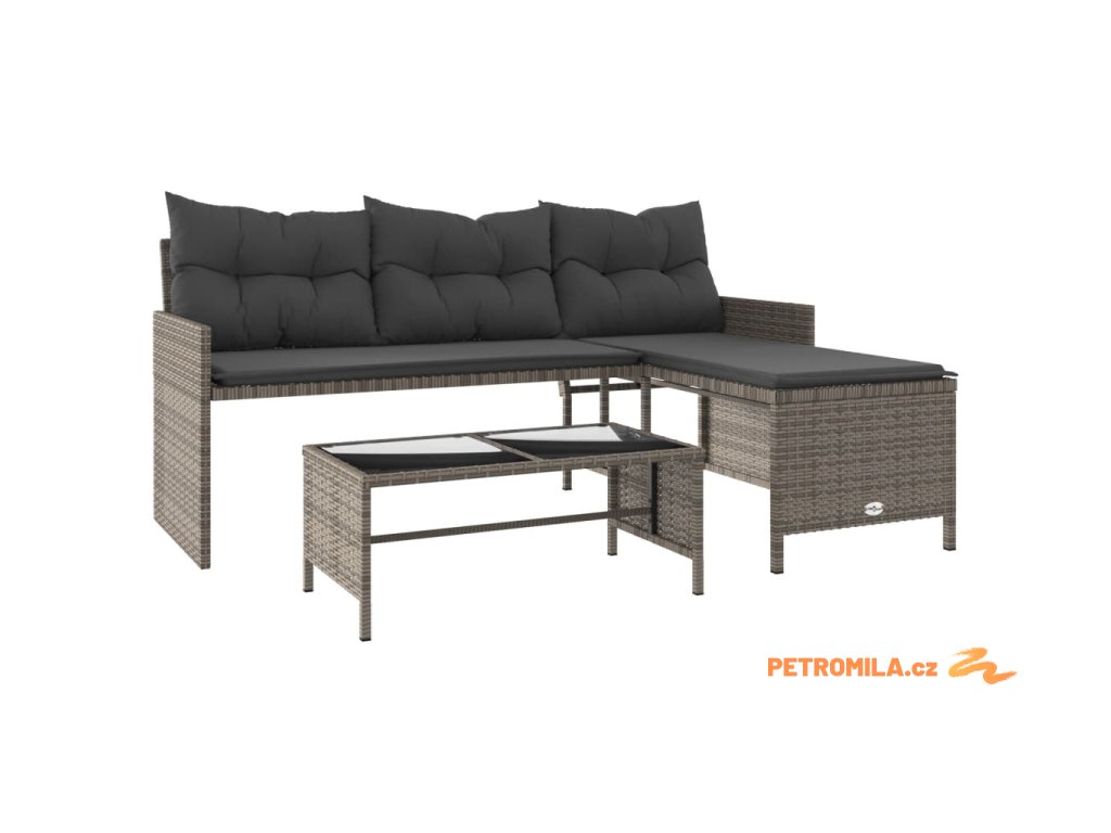 Zahradní pohovka ve tvaru L stolek a podušky šedá polyratan
