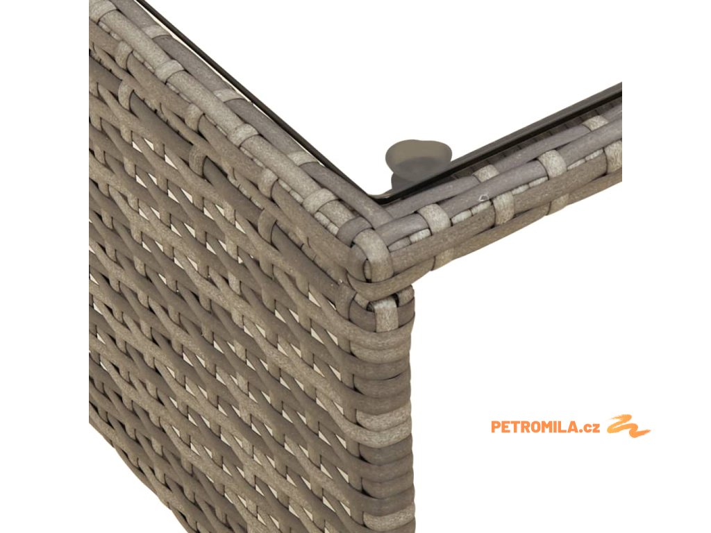 - Materiál: PE ratan, práškově lakovaná ocel, tvrzené sklo