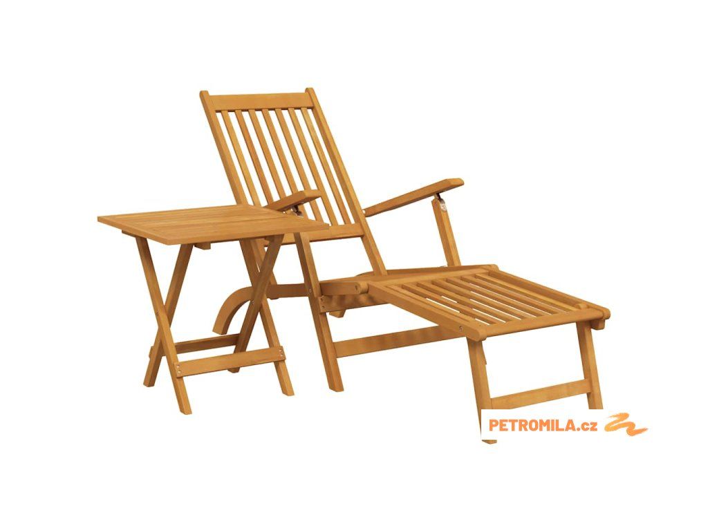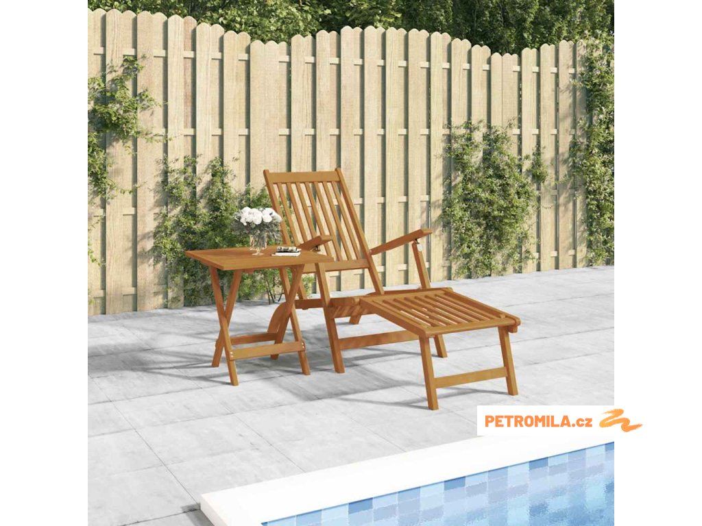 Zahradní polohovací křeslo s podnožkou a stolkem masivní akácie
