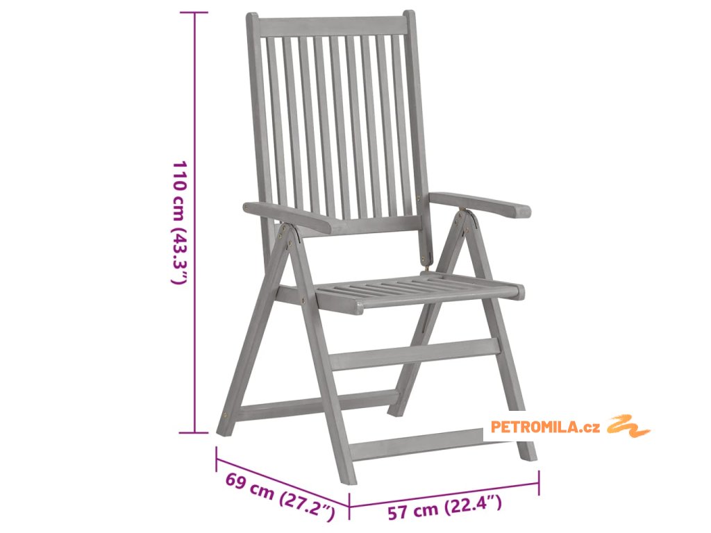 Křesla jsou vyrobená z masivního akáciového dřeva s šedou povrchovou úpravou. Akácie je tvrdé dřevo s hustou kresbou. Zahradní židle mají překrásný design, jsou stabilní, hodně toho vydrží a vypadají velice atraktivně. Opěradla židlí lze nastavit do 5 poloh, takže si vždy najdete tu nejpohodlnější, která vám zrovna vyhovuje. Podušky nabízí mimořádné pohodlí, ať už odpočíváte, nebo večeříte. Každá poduška je opatřená elastickou gumičkou a 2 páry šňůrek, za které ji lze pevně přivázat k židli. Tyto židle jsou ideální pro stolování s rodinou nebo pro relaxaci na čerstvém vzduchu.