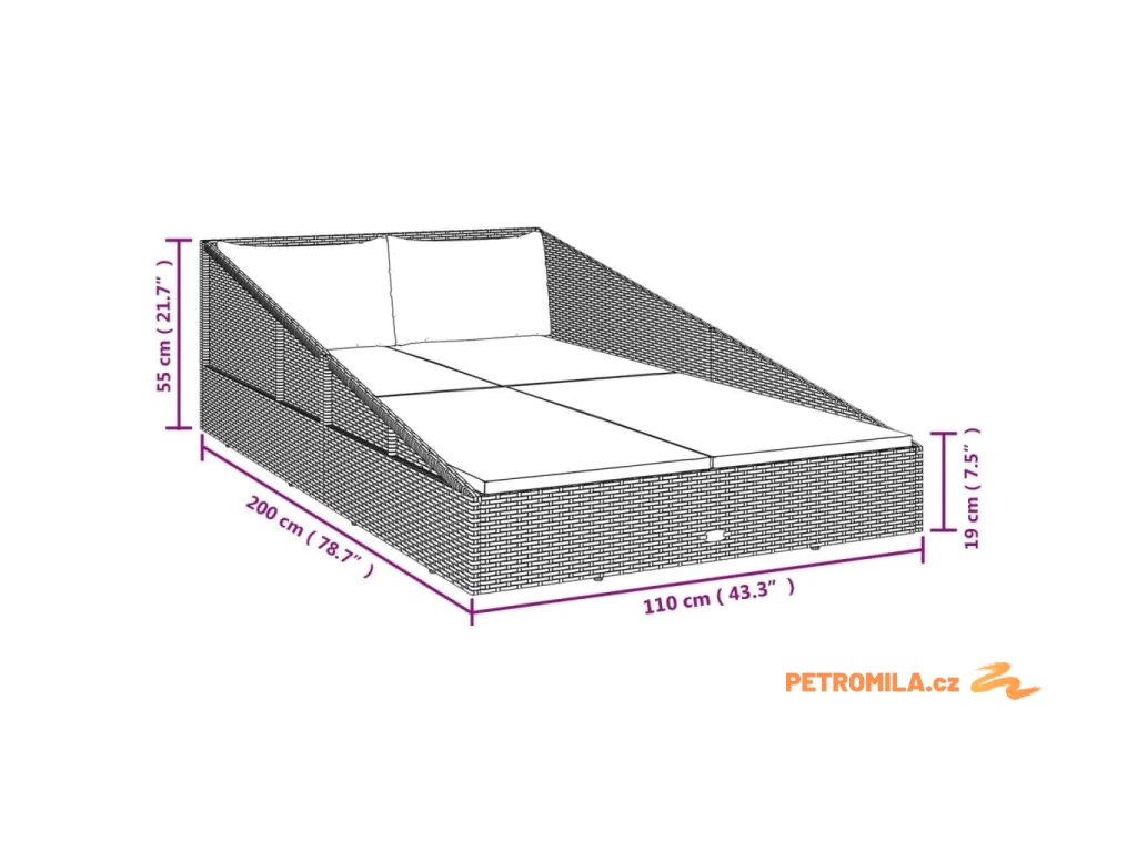 - Rozměry: 110 x 200 x 55 cm (D x Š x V)