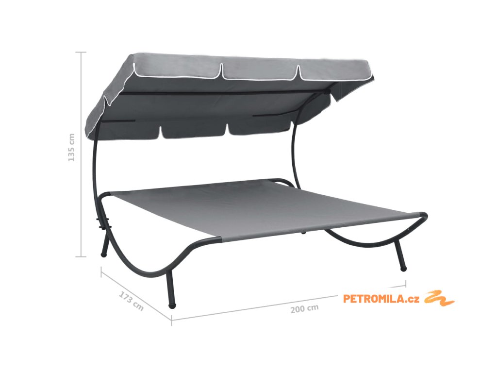 Lehátko je vyrobeno z materiálu oxford odolného proti povětrnostním vlivům a lze jej používat venku po celý rok. Ocelový rám s práškovým nástřikem dodá výbornou stabilitu a zajistí dlouhou životnost a vynikající odolnost. Stříška z vodoodpudivého polyesteru vám bezpochyby poskytne optimální zážitek z ležení. Venkovní postel pro dvě osoby vám poskytne stín, neboť je vybavena velkým baldachýnem. Snadno se sestavuje.