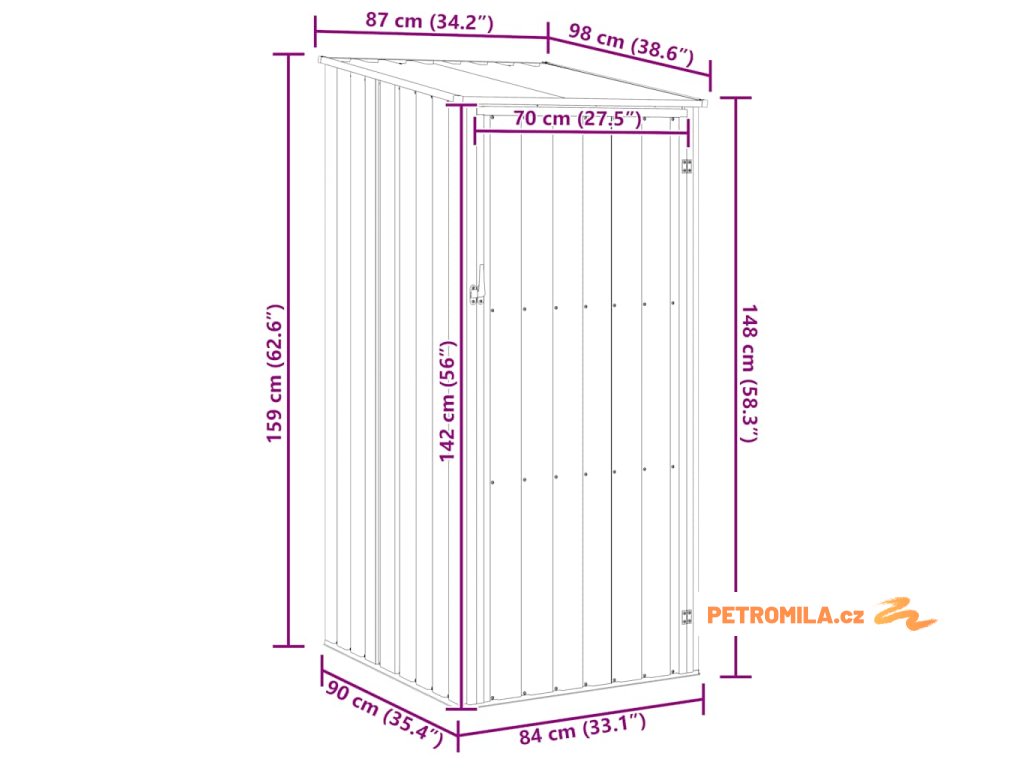 - Celkové rozměry: 87 x 98 x 148/159 cm (Š x H x V)