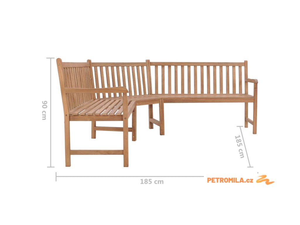 Zahradní rohová lavice 185 x 185 x 90 cm masivní teakové dřevo