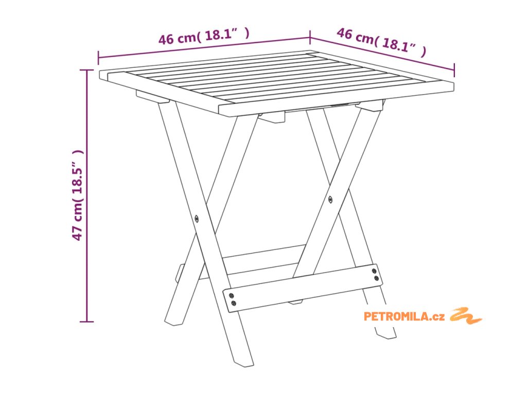 - Celkové rozměry (při rozložení): 46 x 46 x 47 cm (D x Š x V)