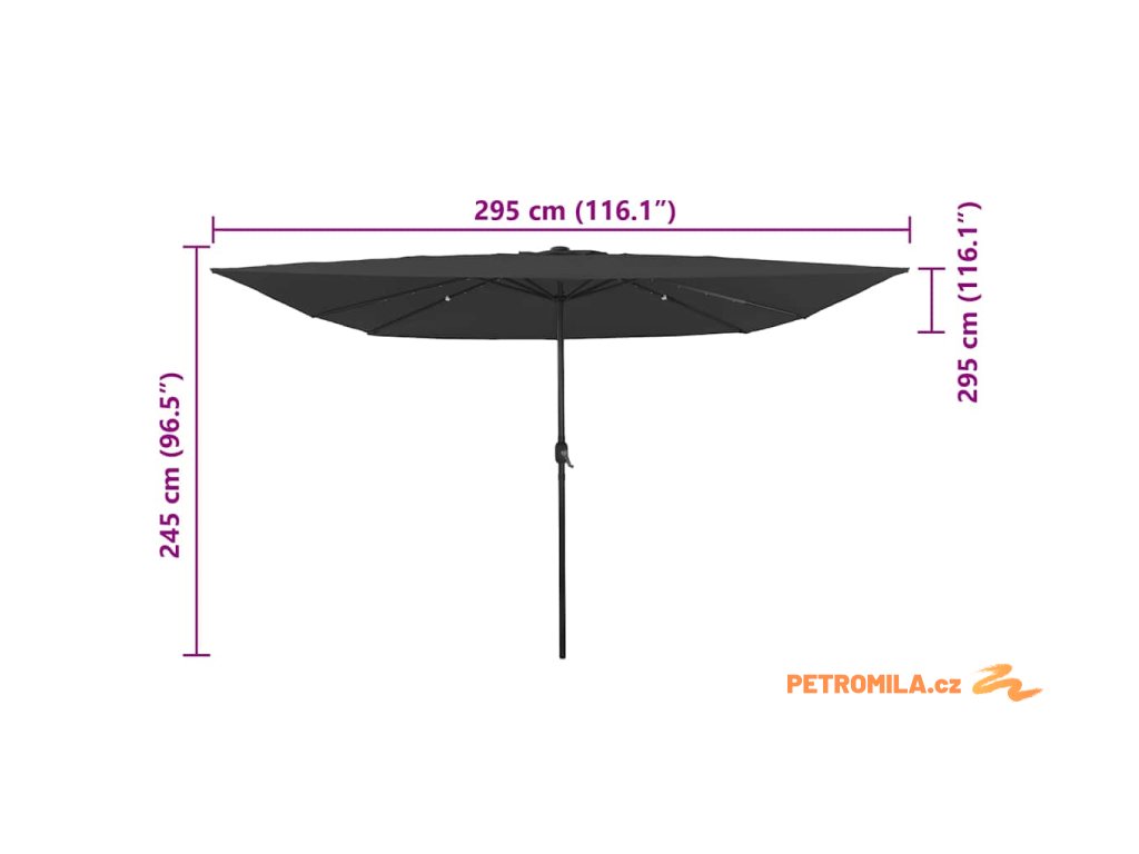 Zahradní slunečník Antracitová a černá 295 x 295 x 245 cm