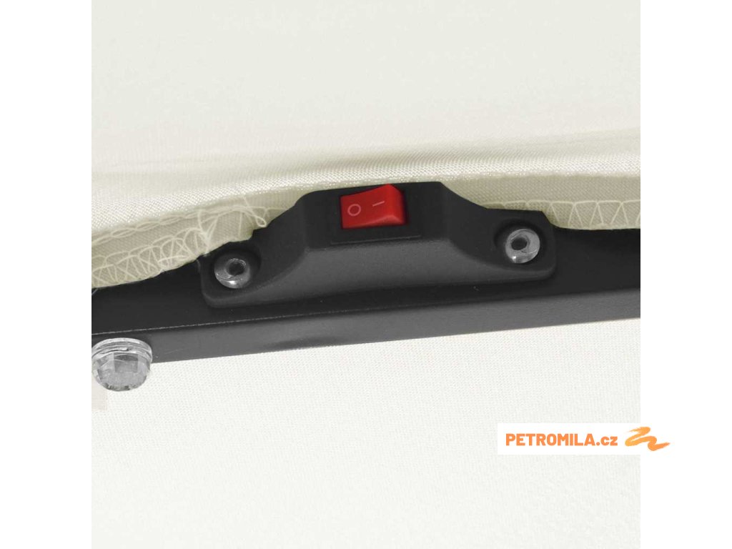 - Robustní materiály: Vyrobený z polyesterového pláště na pevné ocelové konstrukci, která zajišťuje stabilitu a odolnost proti větru. Ocelová část má práškovou lakovanou úpravu, která zvyšuje její výdrž a dodává jí elegantní vzhled, suitable for co se hodí k jakékoli venkovní dekoraci.