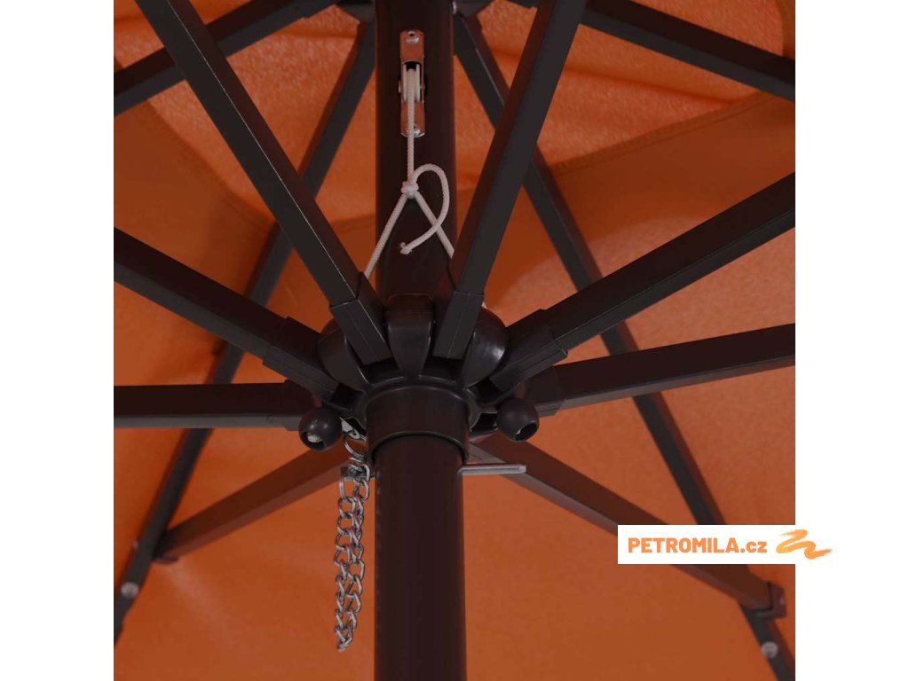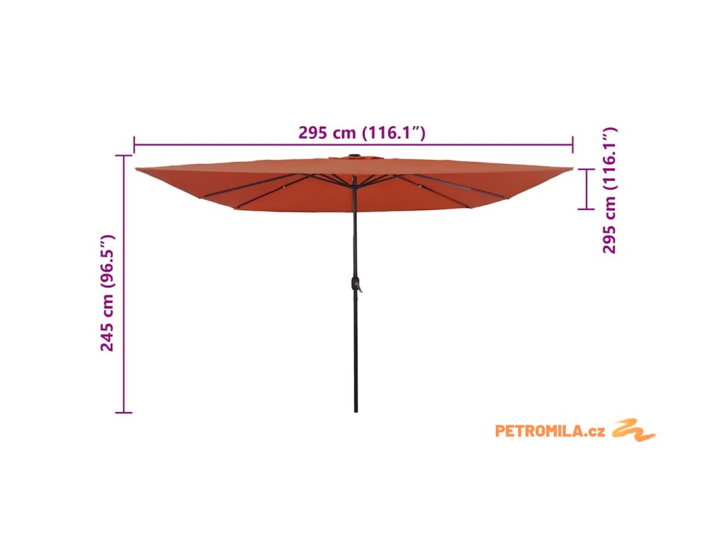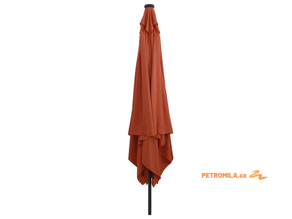 - Robustní materiály: Vyrobený z polyesterového pláště na pevné ocelové konstrukci, která zajišťuje stabilitu a odolnost proti větru. Ocelová část má práškovou lakovanou úpravu, která zvyšuje její výdrž a dodává jí elegantní vzhled, suitable for co se hodí k jakékoli venkovní dekoraci.
