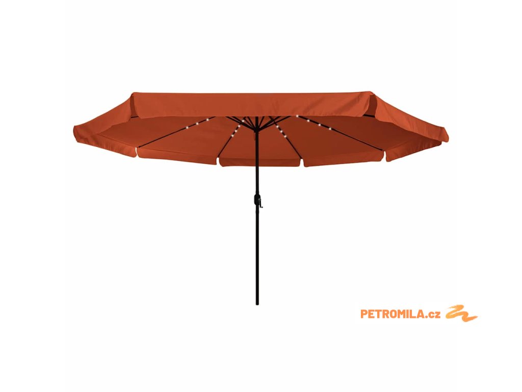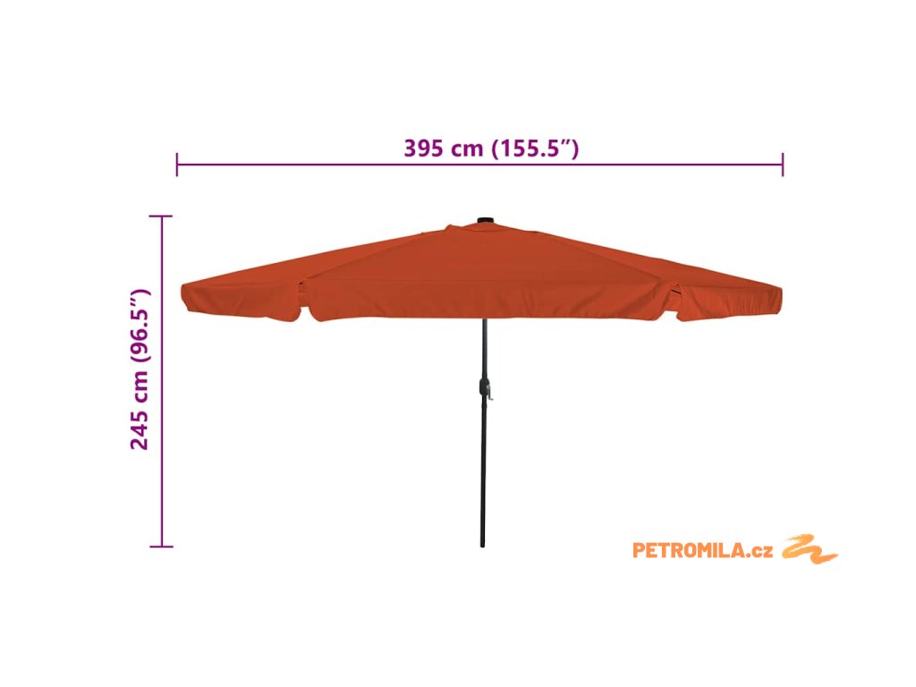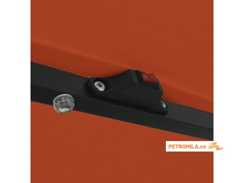 - Integrovaná LED světla: Pro přidanou atmosféru během večerních setkání slunečník obsahuje flexibilní LED pásková světla. Tato pásková světla lze snadno připevnit a poskytují jemné, příjemné osvětlení, které zvýrazní jakoukoliv noční zahradní párty nebo intimní večeři. Toto vestavěné osvětlení je praktické a eliminuje potřebu dalšího venkovního osvětlení.