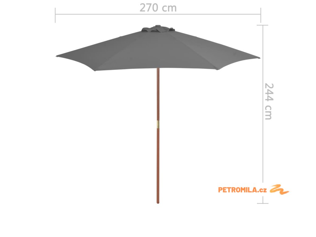 Zahradní slunečník s dřevěnou tyčí 270 cm antracitový