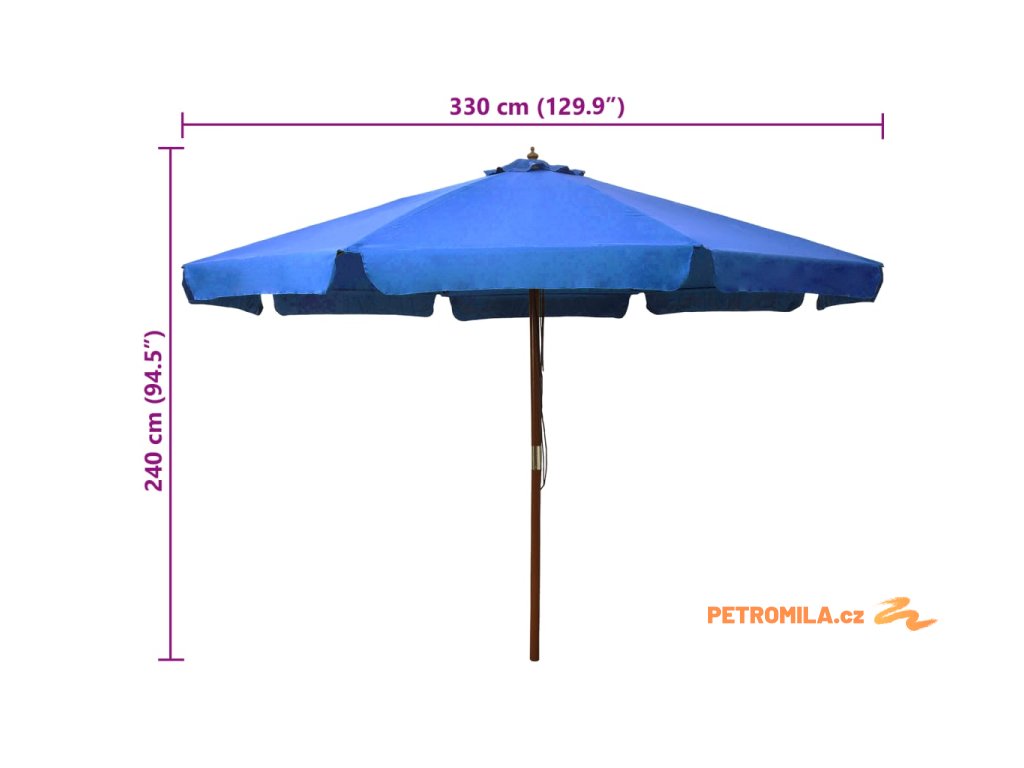 Zahradní slunečník s dřevěnou tyčí 330 cm azurově modrý