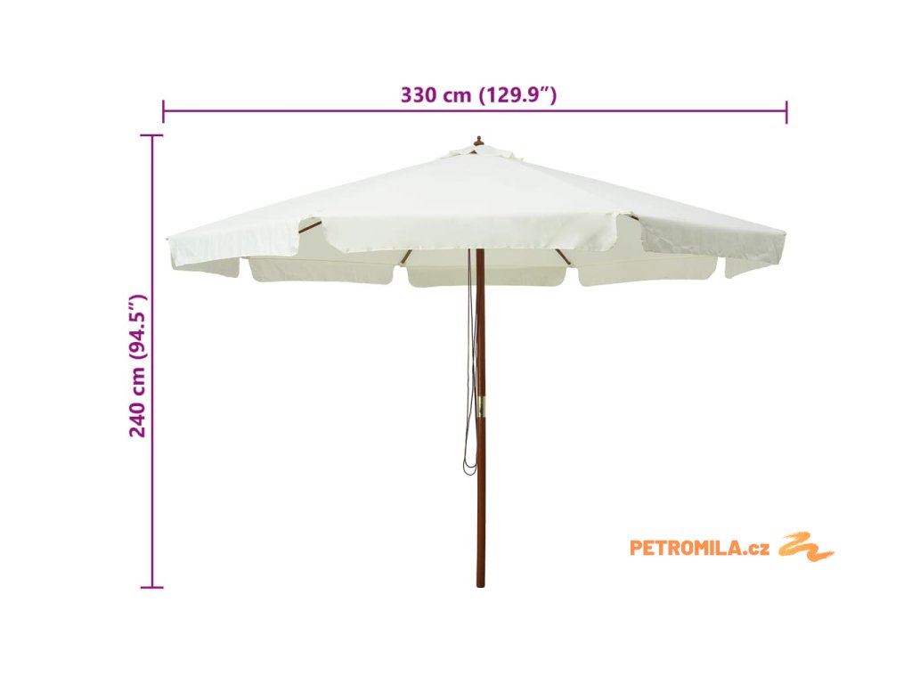Zahradní slunečník s dřevěnou tyčí 330 cm pískově bílý