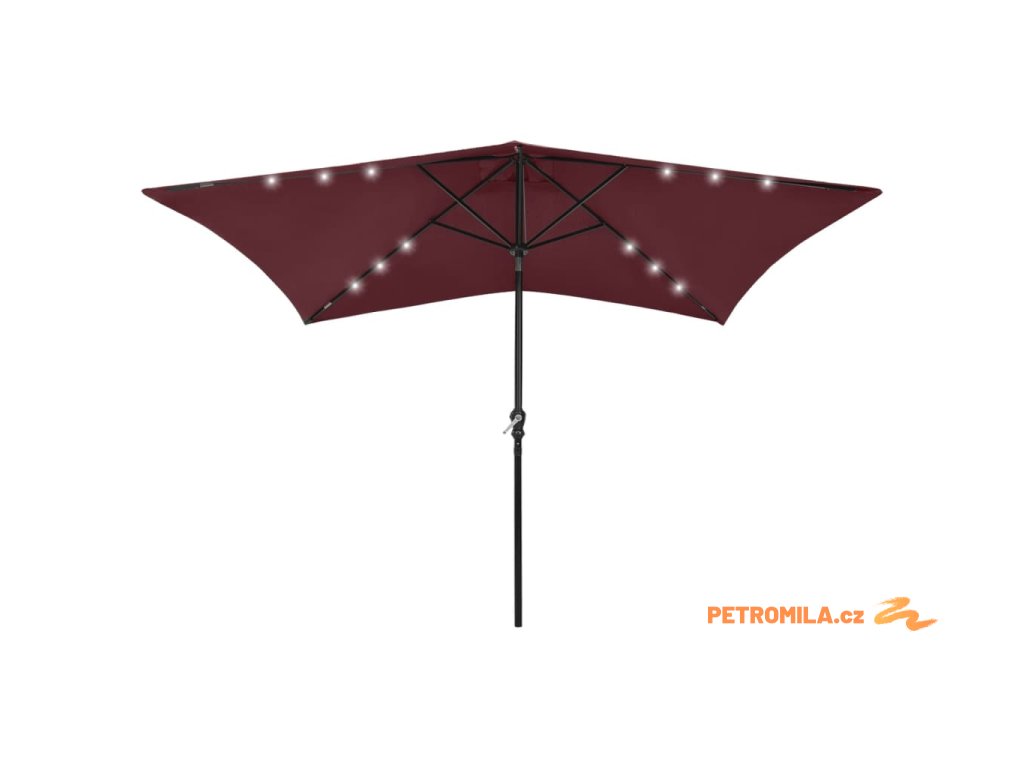 Zahradní slunečník s LED a ocelovou tyčí bordó 2 x 3 m