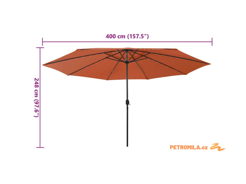 Zahradní slunečník s LED osvětlením 400 cm terakotový