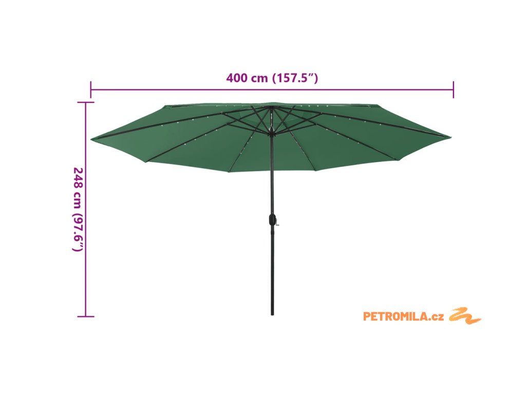 Zahradní slunečník s LED osvětlením 400 cm zelený