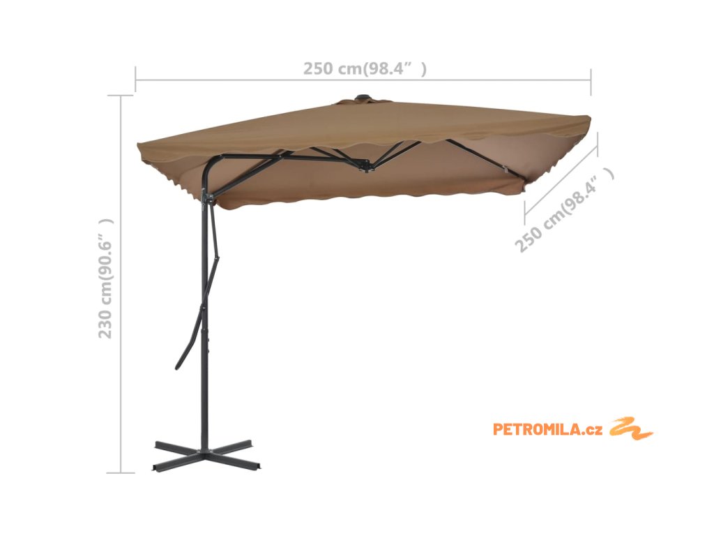 Zahradní slunečník s ocelovou tyčí 250 x 250 cm taupe