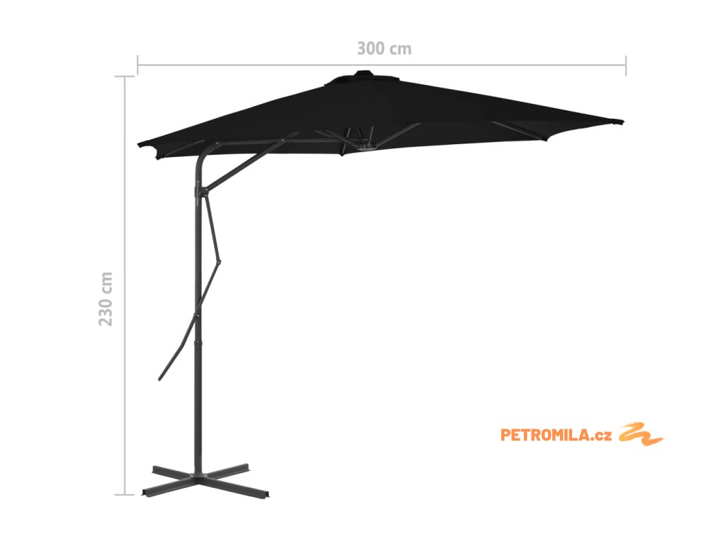 Zahradní slunečník s ocelovou tyčí černý 300 x 230 cm