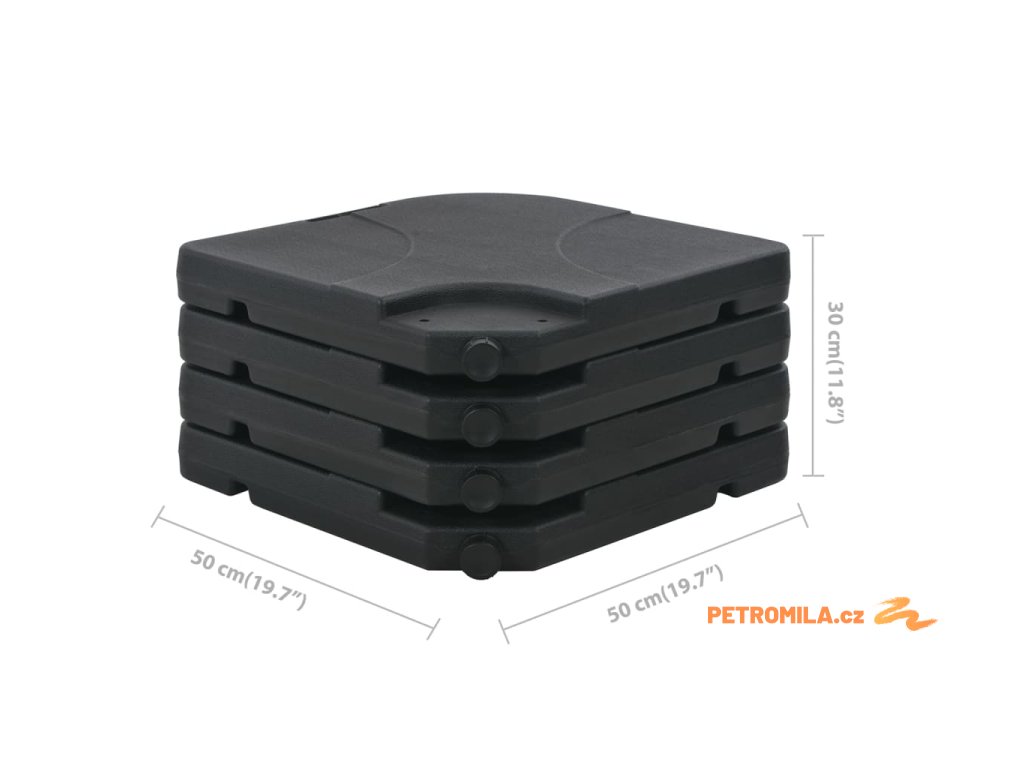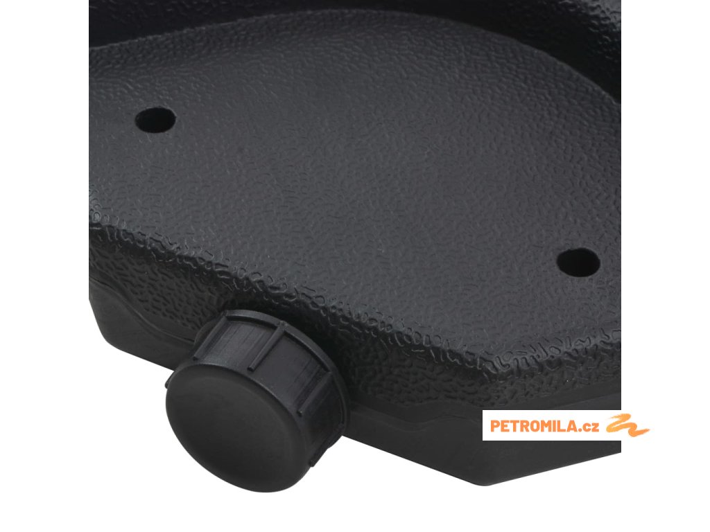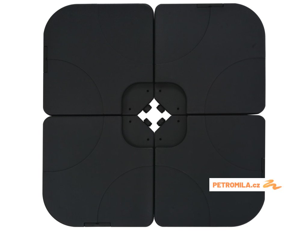 Dodatečný podstavec se skládá ze čtyř samostatných částí a lze jej naplnit 60 litry vody nebo 80 kg písku. Skvěle se hodí pro slunečníky s křížovou základnou. Pokud podstavec vyprázdníte, je velice lehký a dá se tedy snadno přenášet.