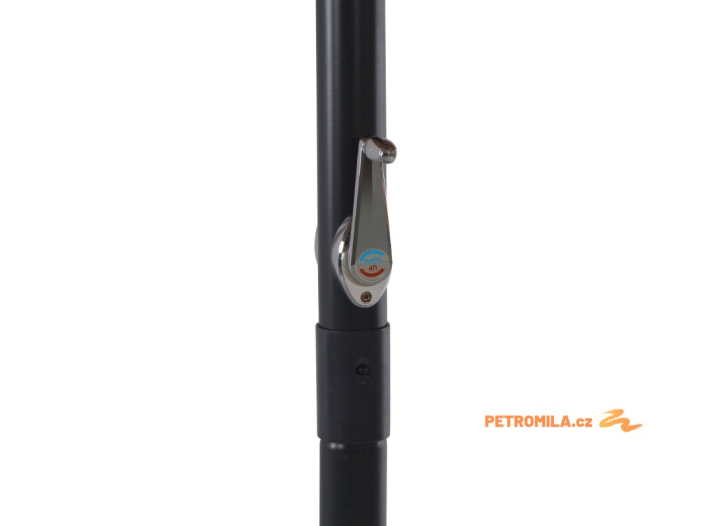 Tento zahradní slunečník se dá snadno otevřít jednoduchým otočením páčky na tyči. Hliníková tyč spolu s 8 odolnými žebry činí slunečník velmi trvanlivým. Velká křížová ocelová základna je odnímatelná a dodává slunečníku na stabilitě, aniž by zabírala příliš místa.