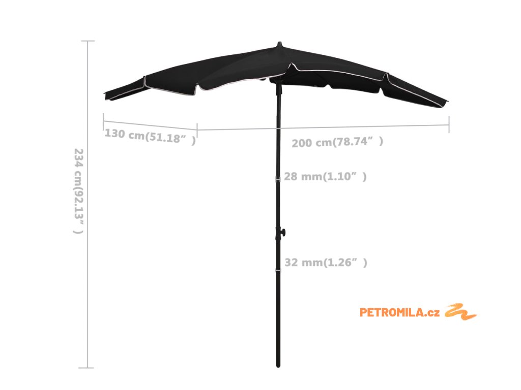 Zahradní slunečník s tyčí 200 x 130 cm černý