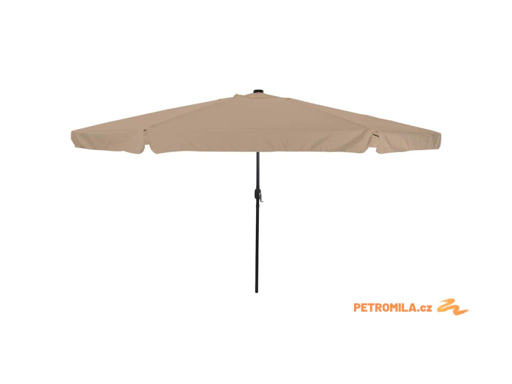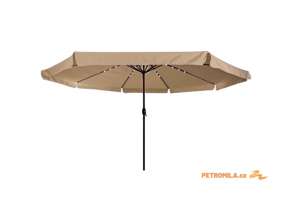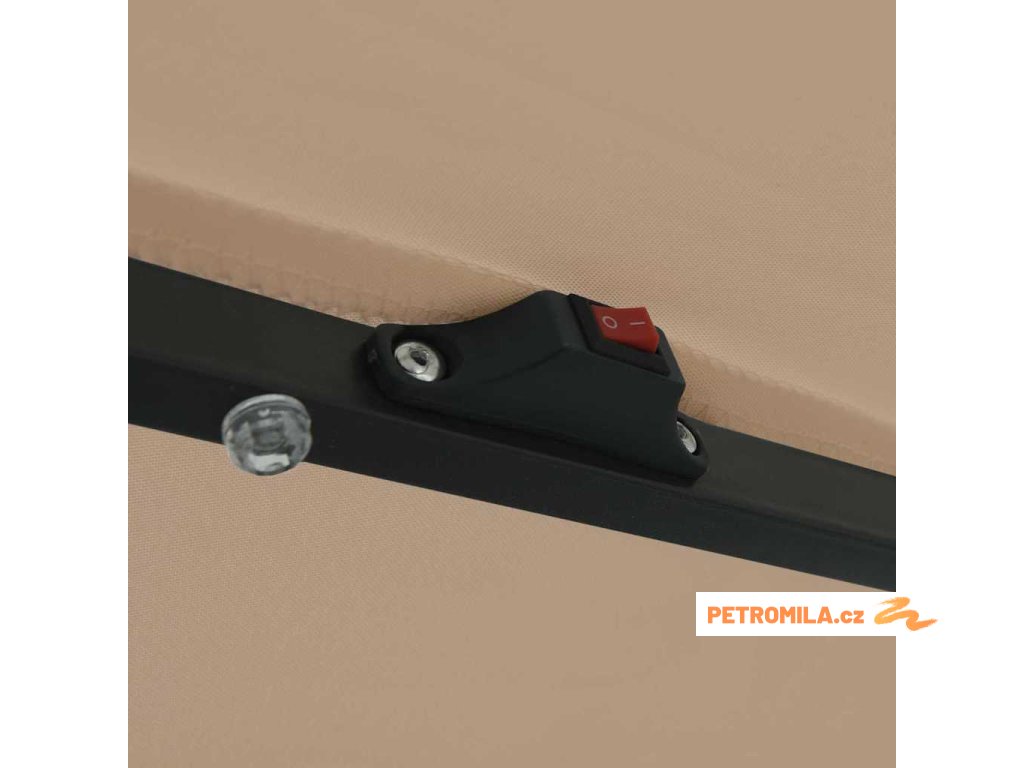- Integrovaná LED světla: Pro přidanou atmosféru během večerních setkání slunečník obsahuje flexibilní LED pásková světla. Tato pásková světla lze snadno připevnit a poskytují jemné, příjemné osvětlení, které zvýrazní jakoukoliv noční zahradní párty nebo intimní večeři. Toto vestavěné osvětlení je praktické a eliminuje potřebu dalšího venkovního osvětlení.