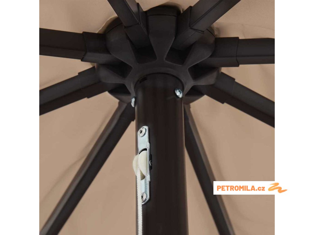 - Moderní designové prvky: Tento slunečník nachází rovnováhu mezi stylovým, moderním estetickým a praktickým. Jeho práškově lakovaný povrch doplňuje čisté linie a minimální ozdobnost, což z něj činí univerzální volbu pro různé designové schémata od moderních po tradiční venkovní prostory.