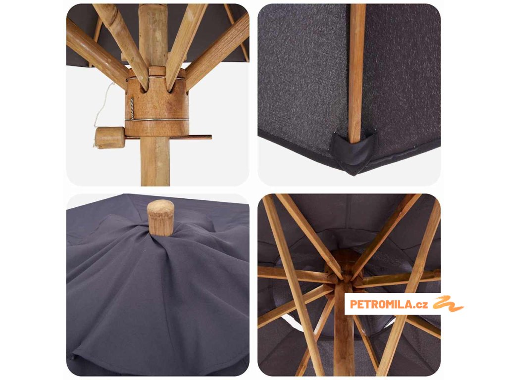- Estetický design: S stylovým a jednoduchým designem, deštník obohacuje jakýkoliv venkovní prostor. Přidává hezký prvek, který se hodí k různým nábytkům. Ideální na venkovní setkání, jídlo nebo relaxaci – je to univerzální volba pro váš zahradní styl.
